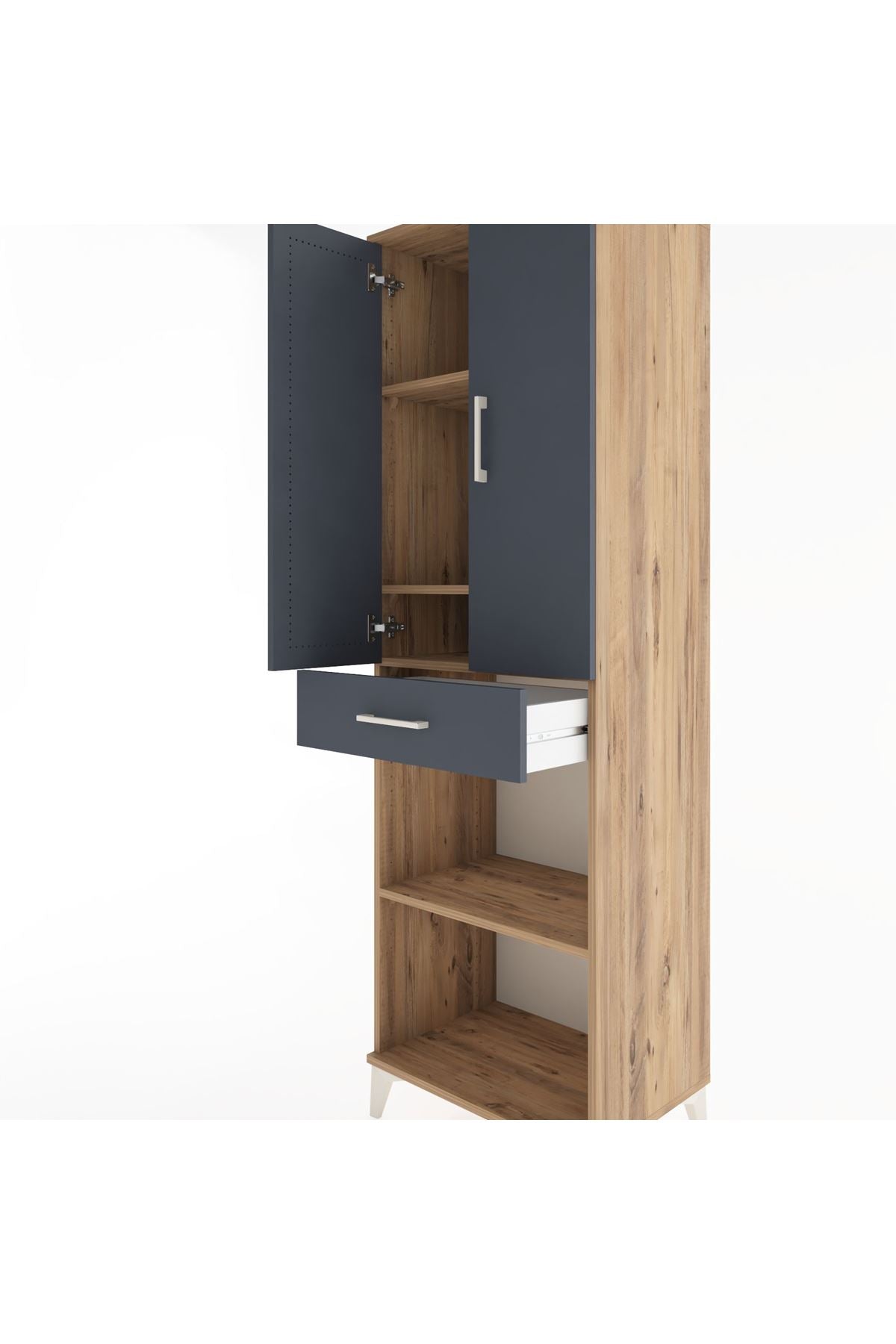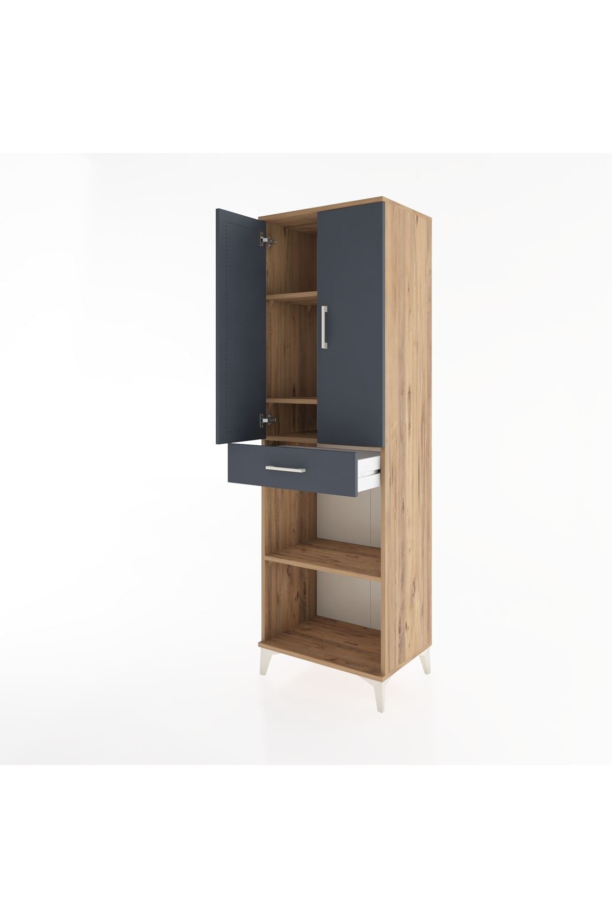 Hyperion Dolap 4 Raflı Tek Çekmeceli 2 Kapaklı 60x44x195 Çam-Antrasit