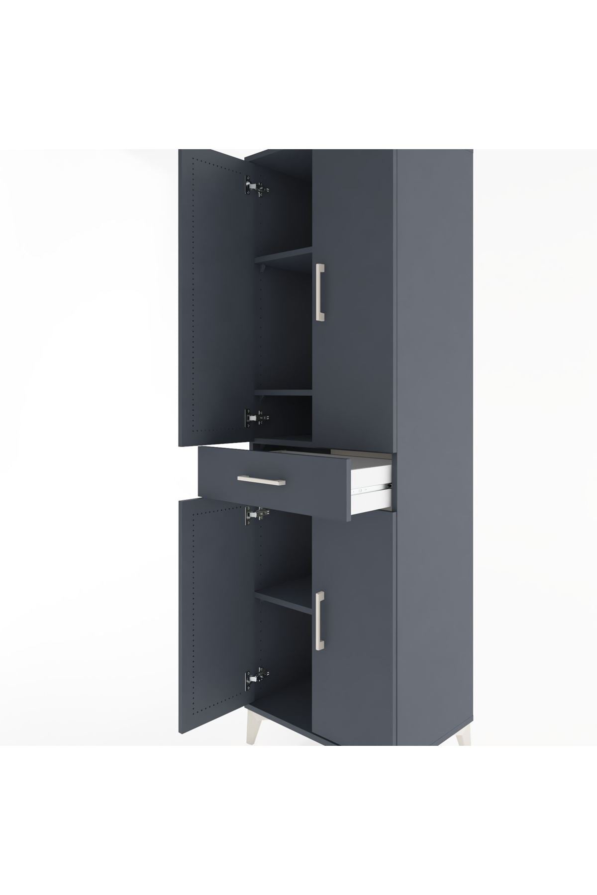 Hyperion Dolap 4 Raflı Tek Çekmeceli 4 Kapaklı 60x44x195 Antrasit-Antrasit