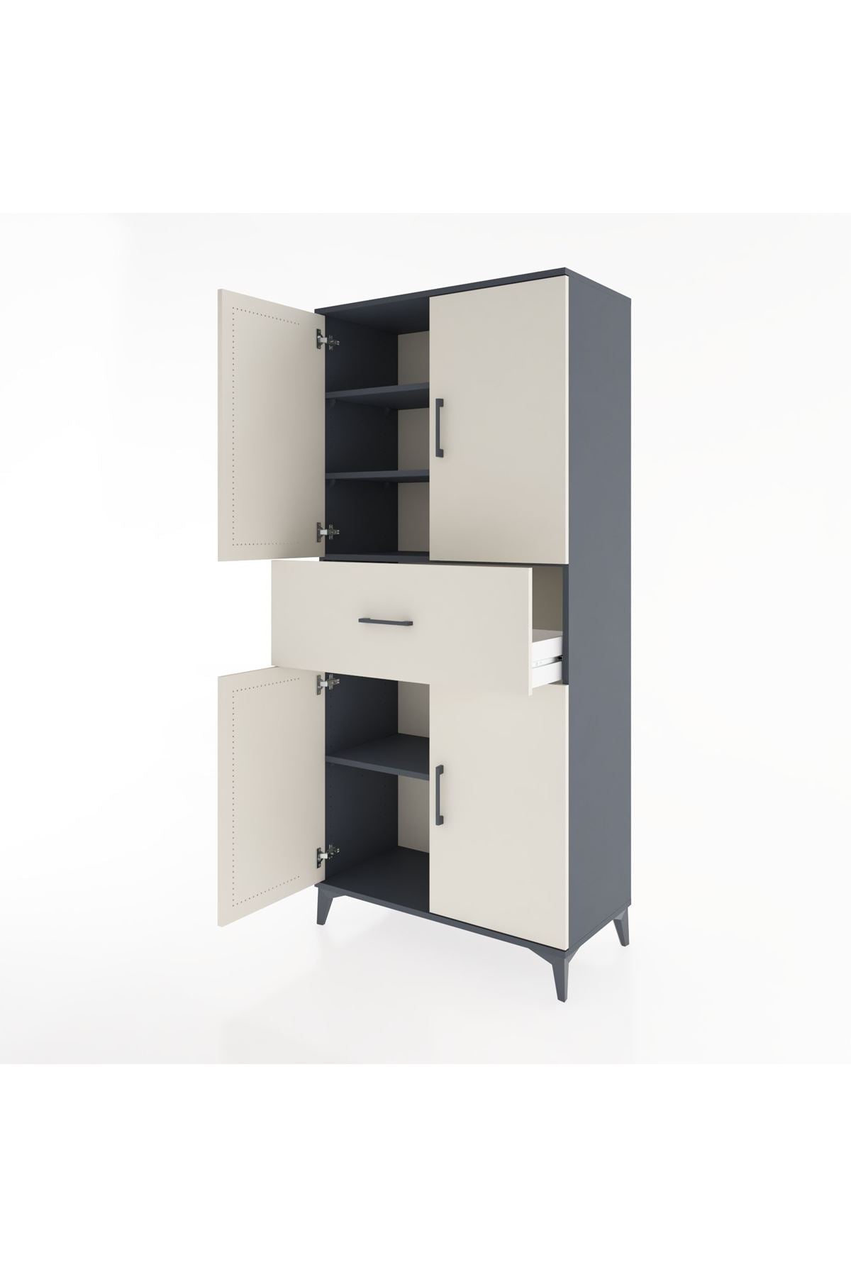 Hyperion Dolap 4 Raflı Tek Çekmeceli 4 Kapaklı 88x44x195 Antrasit-Aytaşı