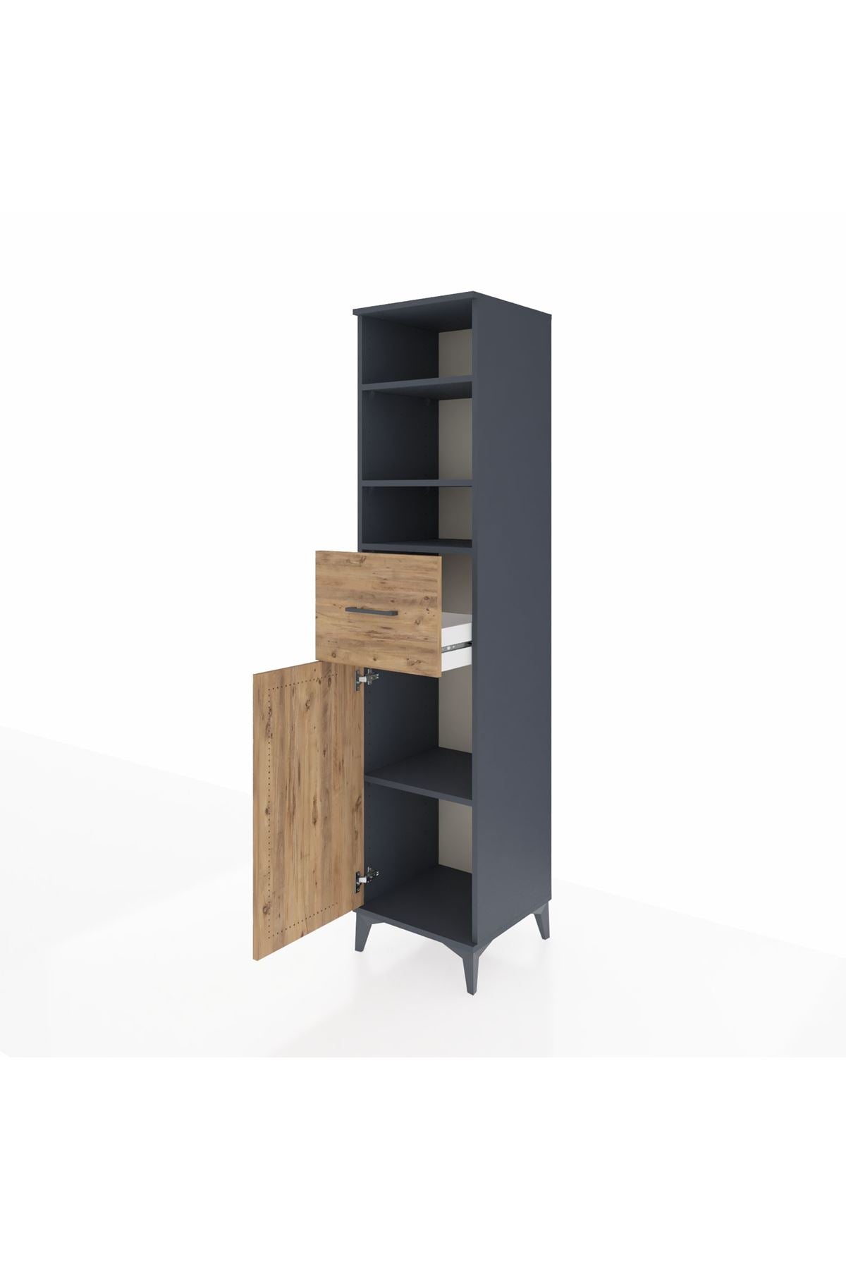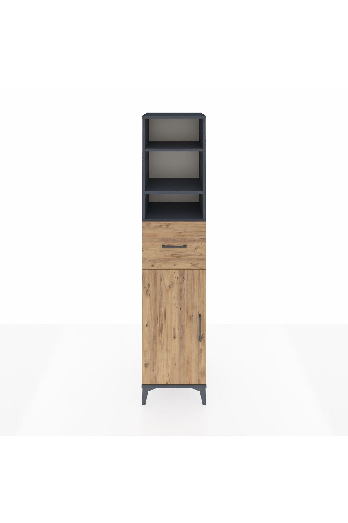 Hyperion Dolap 4 Raflı Tek Çekmeceli Tek Kapaklı 44x44x195 Antrasit-Çam