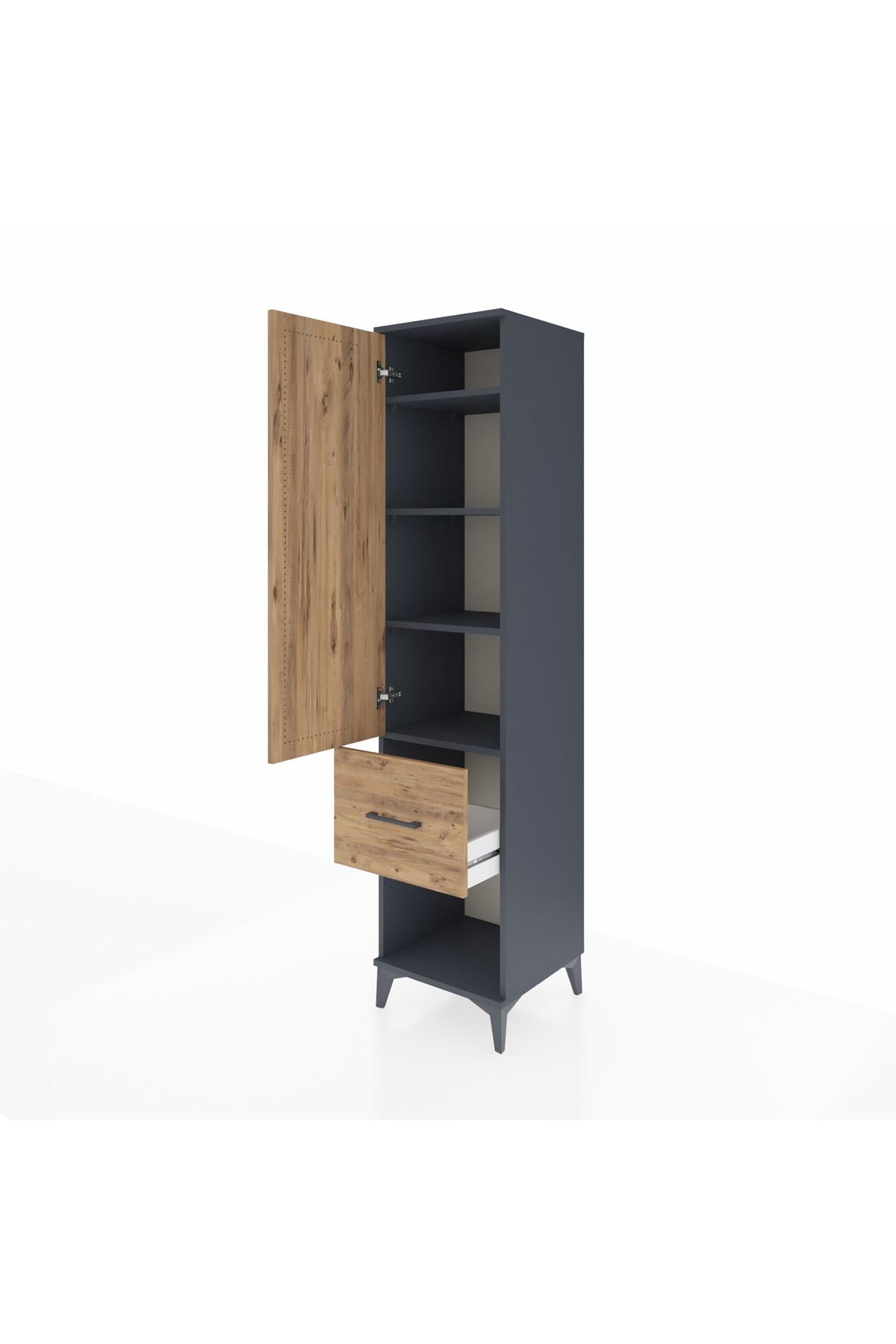 Hyperion Dolap 4 Raflı Tek Çekmeceli Tek Kapaklı 44x44x195 Antrasit-Çam