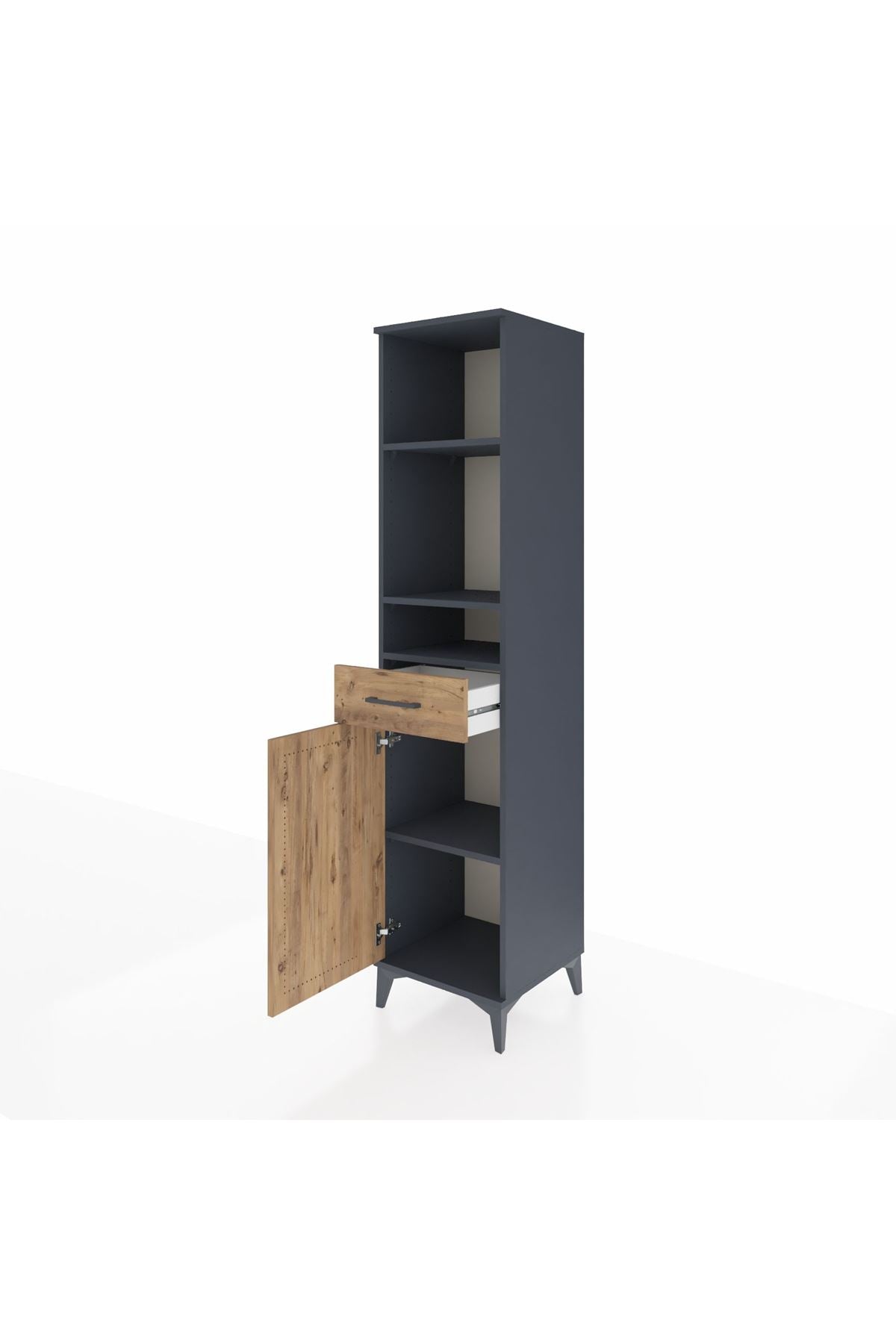Hyperion Dolap 4 Raflı Tek Çekmeceli Tek Kapaklı 44x44x195 Antrasit-Çam