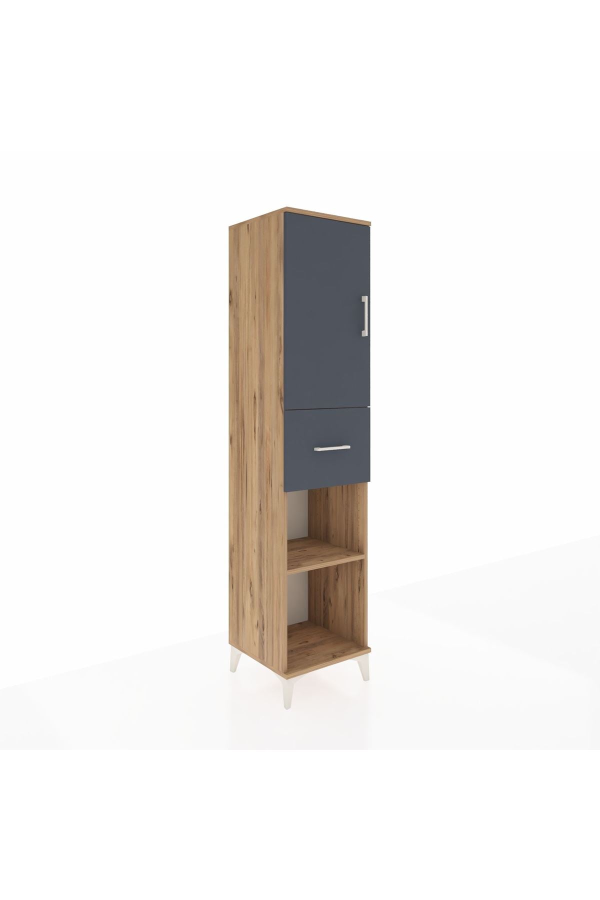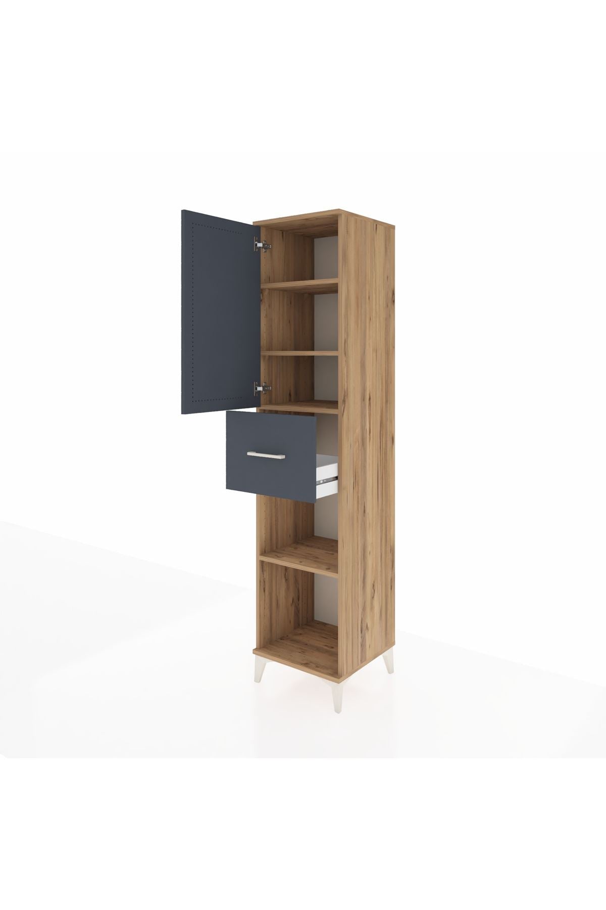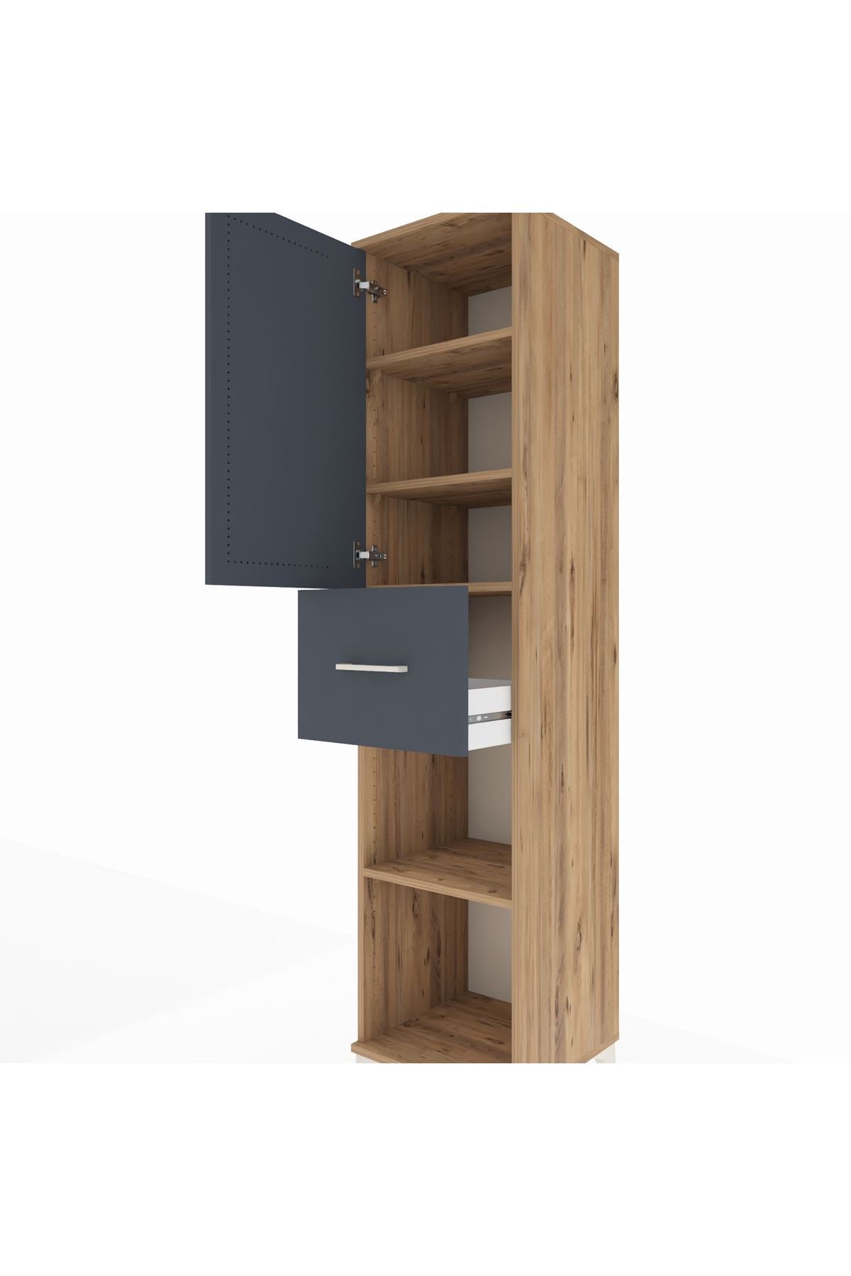 Hyperion Dolap 4 Raflı Tek Çekmeceli Tek Kapaklı 44x44x195 Çam-Antrasit