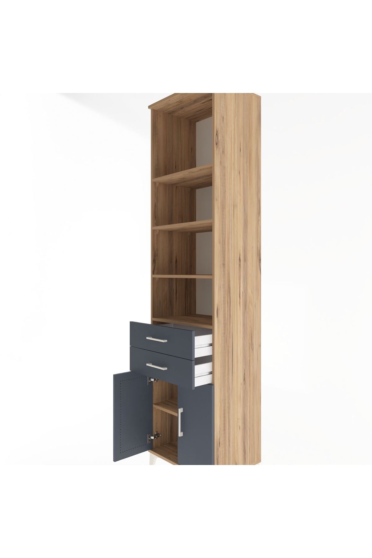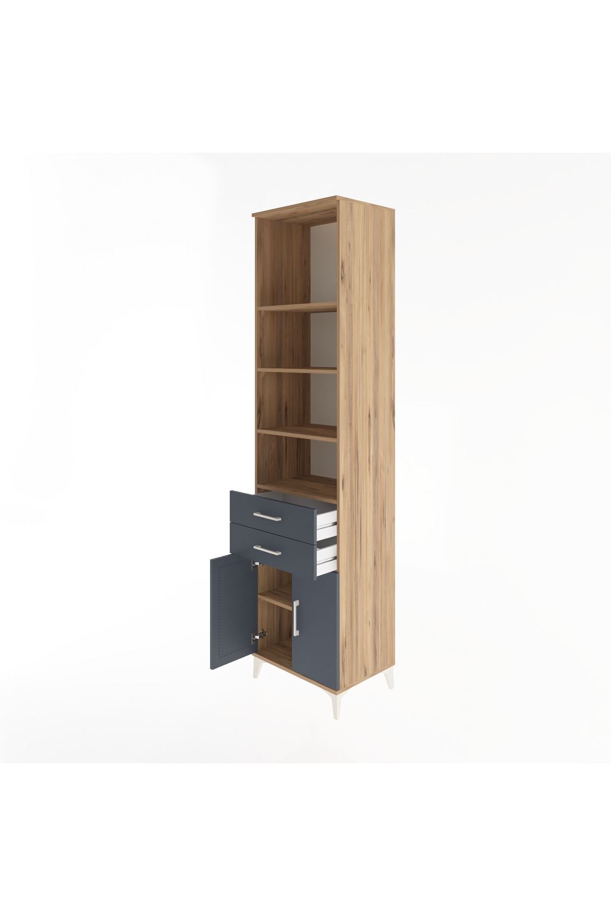 Hyperion Dolap 5 Raflı 2 Çekmeceli 2 Kapaklı 60x44x243 Çam-Antrasit
