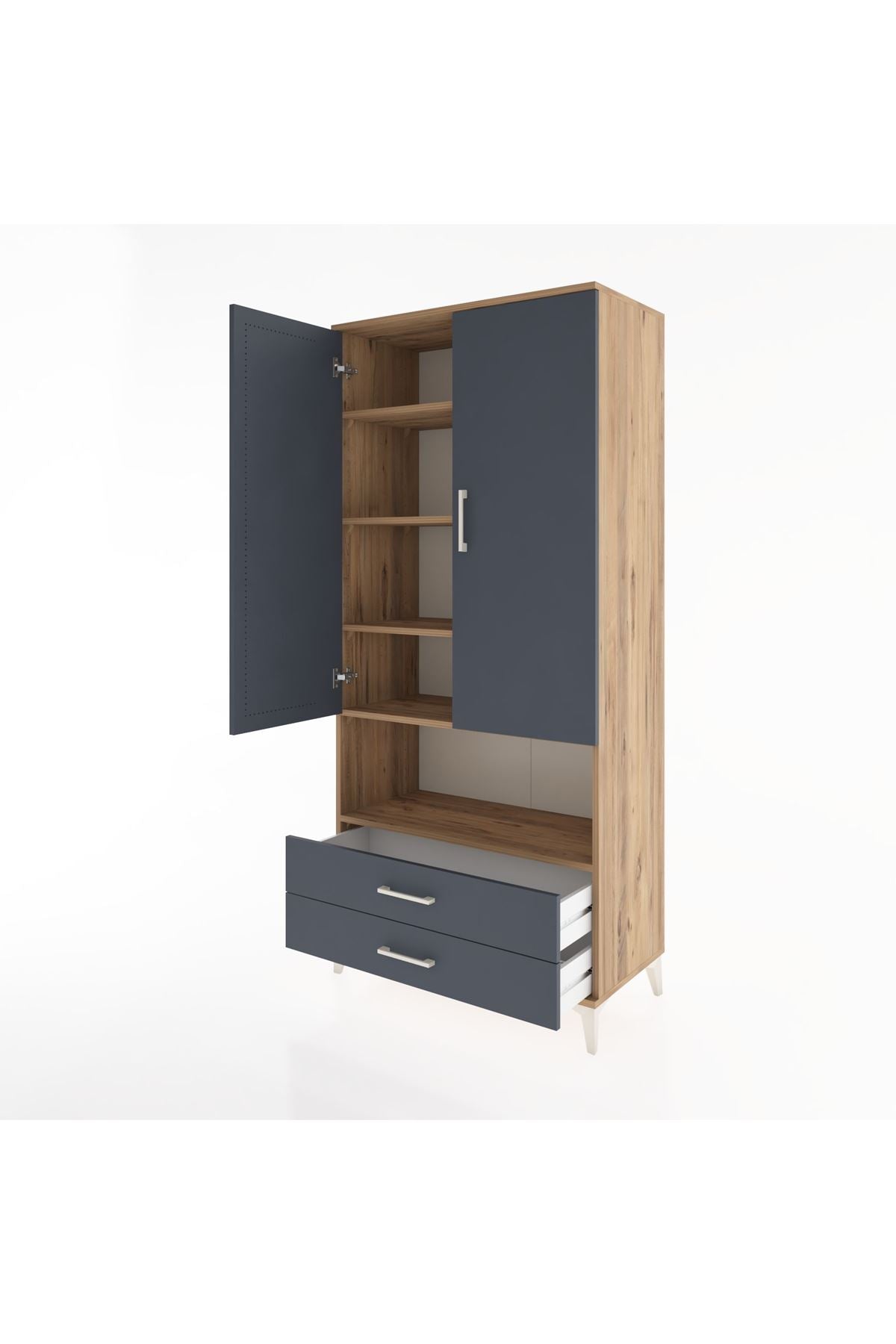 Hyperion Dolap 5 Raflı 2 Çekmeceli 2 Kapaklı 88x44x195 Çam-Antrasit