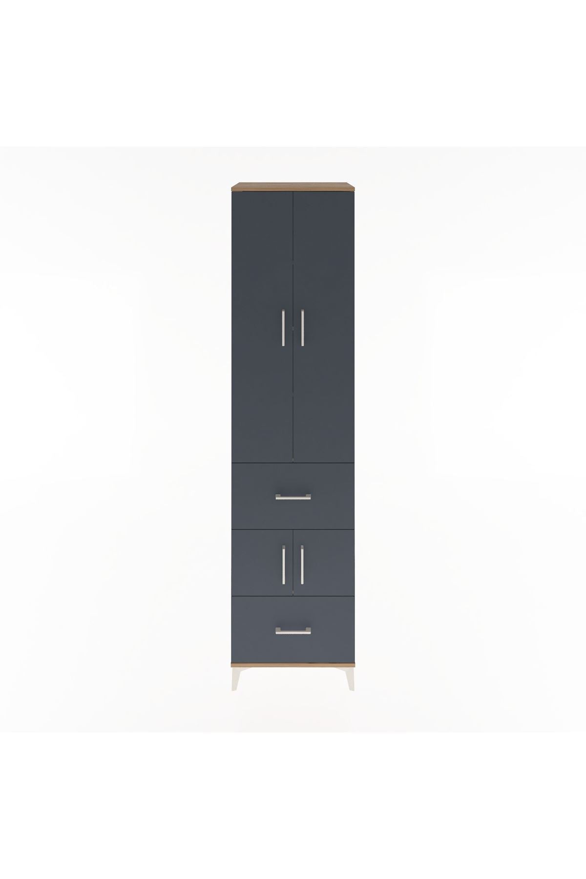 Hyperion Dolap 5 Raflı 2 Çekmeceli 4 Kapaklı 60x44x243 Çam-Antrasit