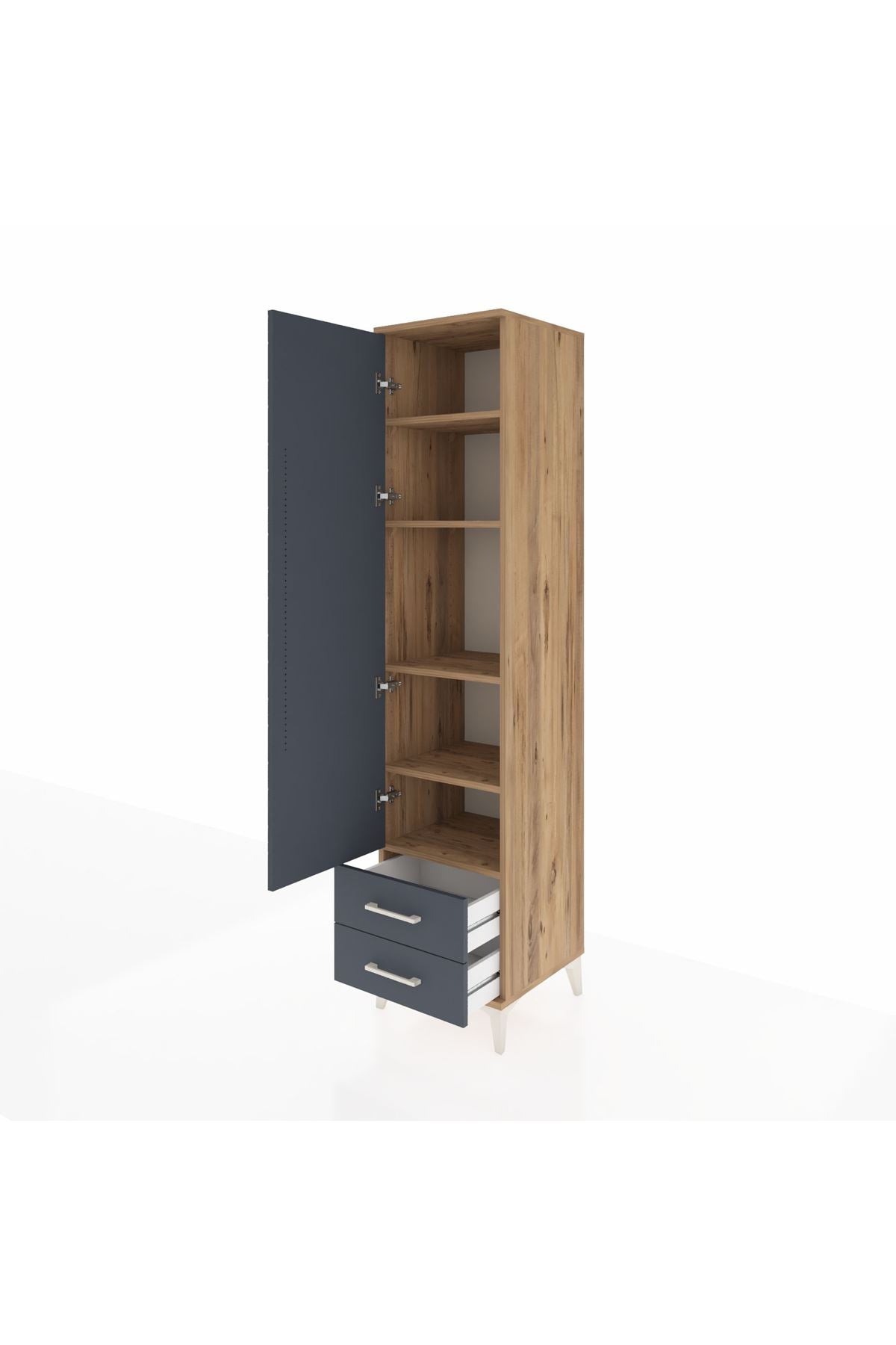 Hyperion Dolap 5 Raflı 2 Çekmeceli Tek Kapaklı 44x44x195 Çam-Antrasit