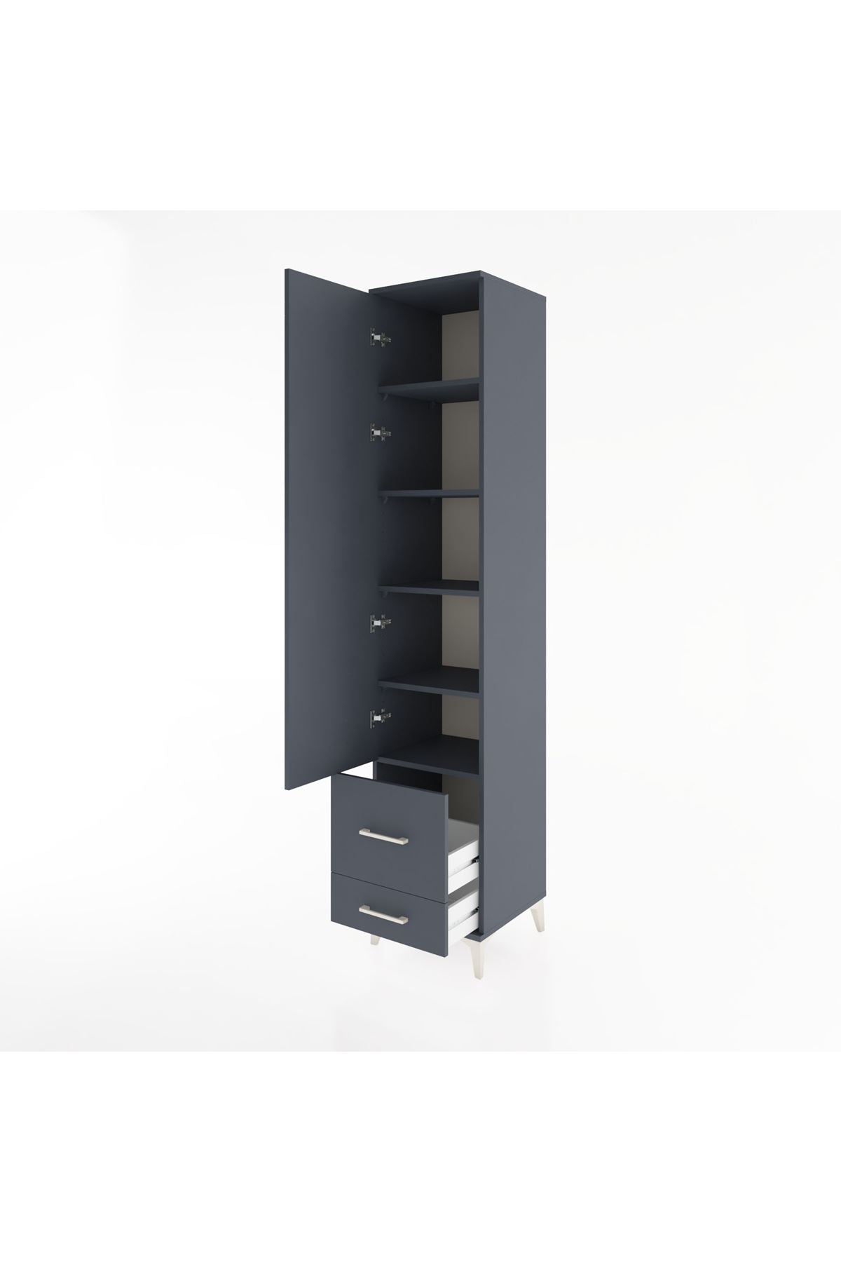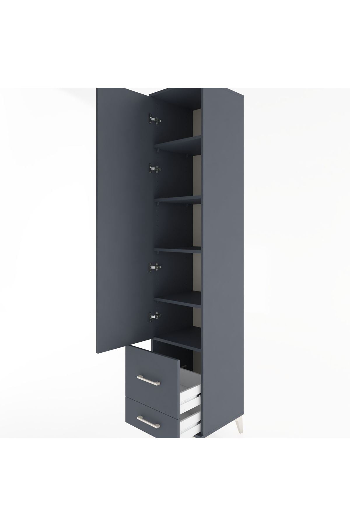 Hyperion Dolap 5 Raflı 2 Çekmeceli Tek Kapaklı 44x44x221 Antrasit-Antrasit
