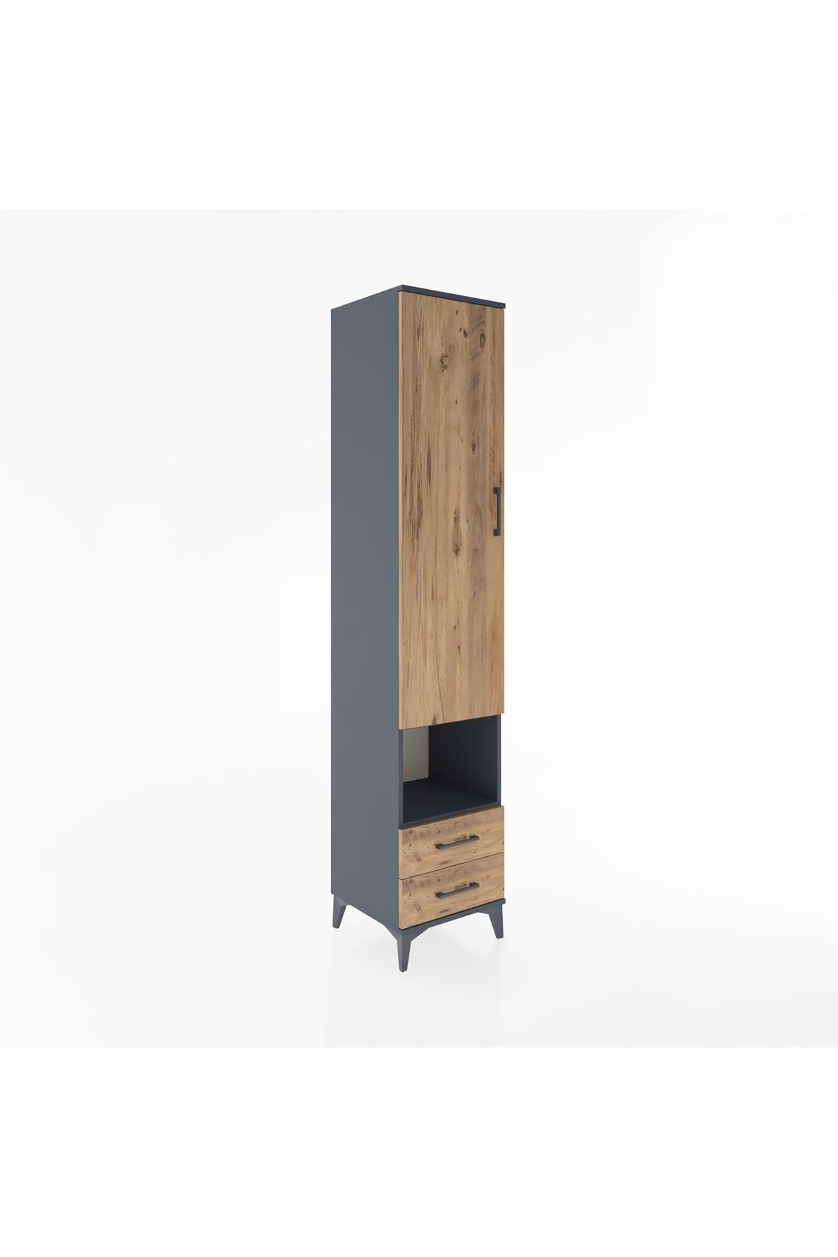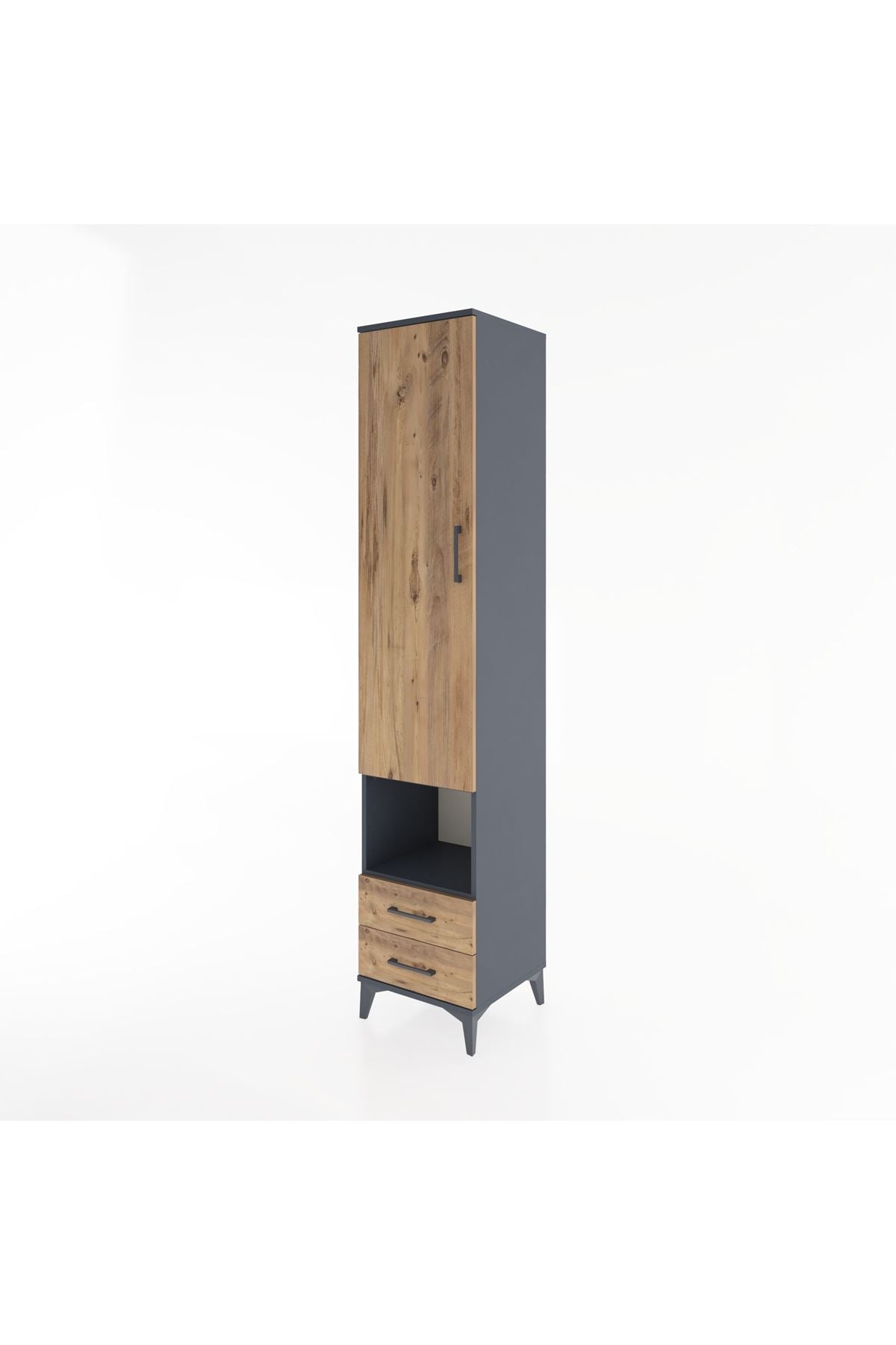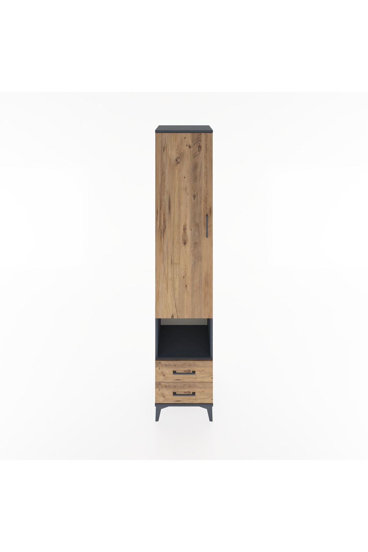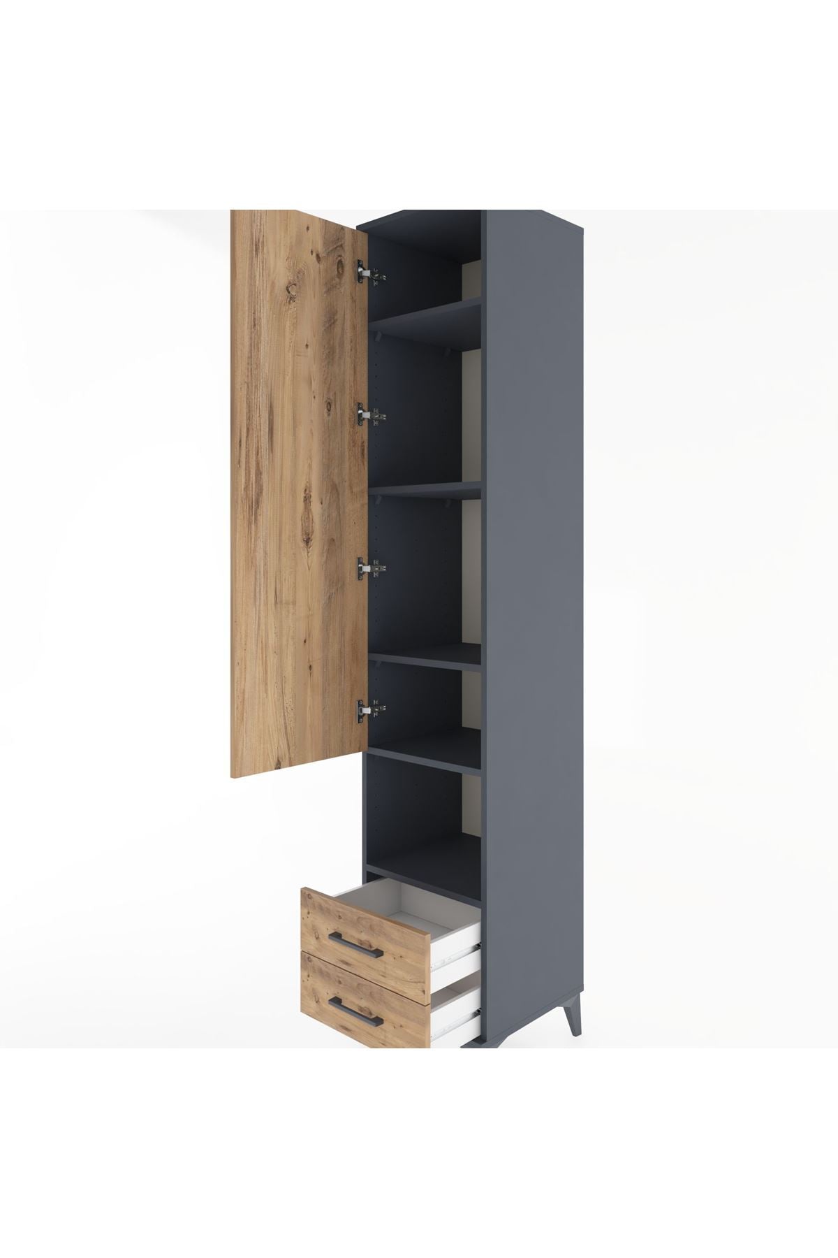 Hyperion Dolap 5 Raflı 2 Çekmeceli Tek Kapaklı 44x44x221 Antrasit-Çam