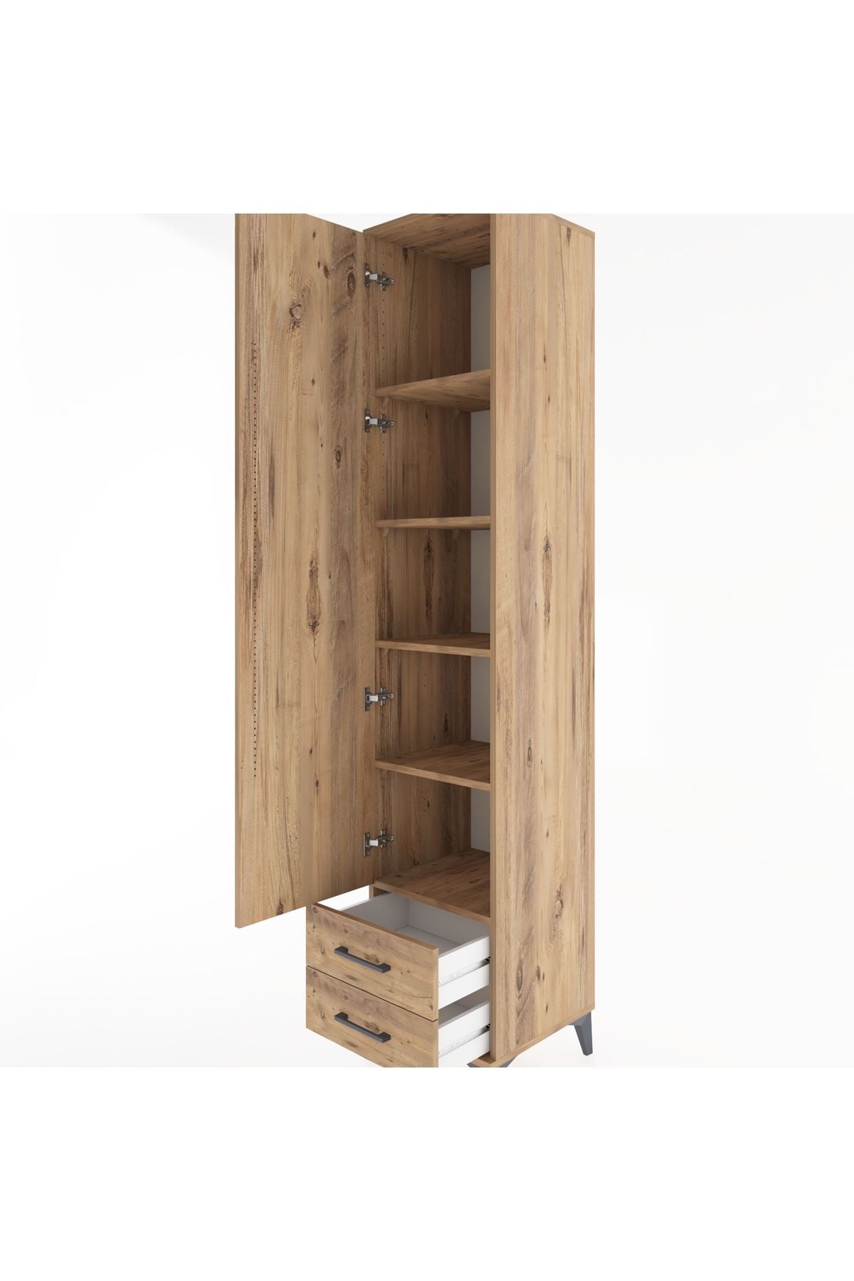 Hyperion Dolap 5 Raflı 2 Çekmeceli Tek Kapaklı 44x44x221 Çam-Çam