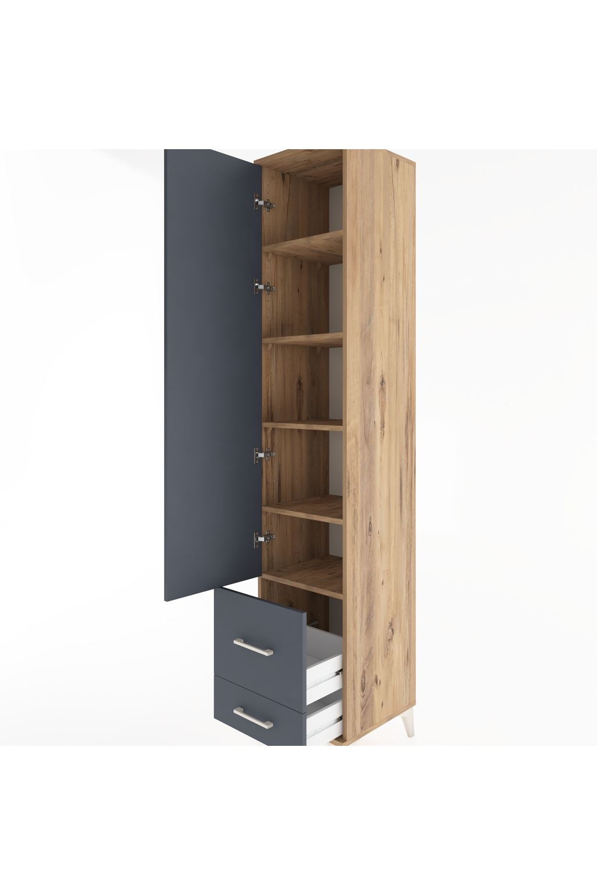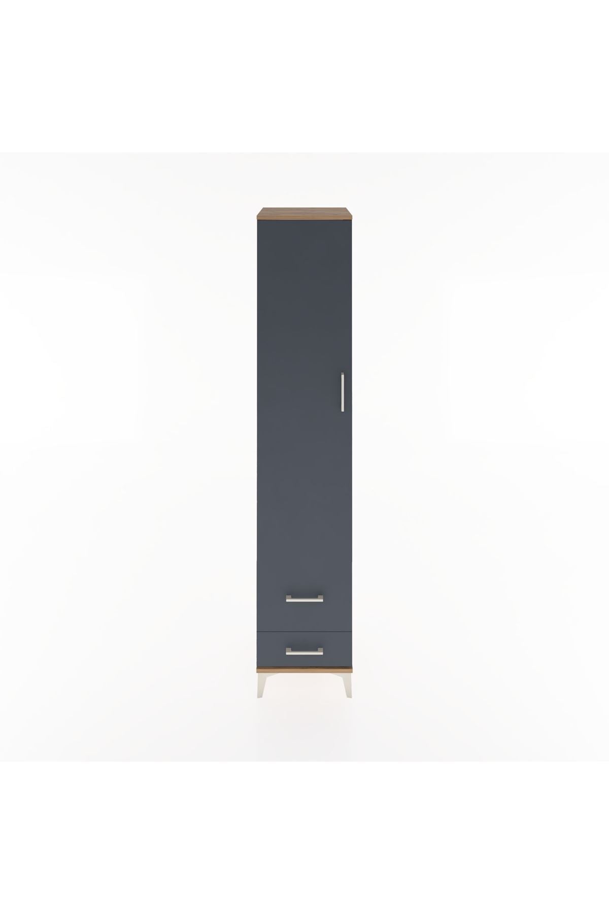 Hyperion Dolap 5 Raflı 2 Çekmeceli Tek Kapaklı 44x44x221 Çam-Antrasit