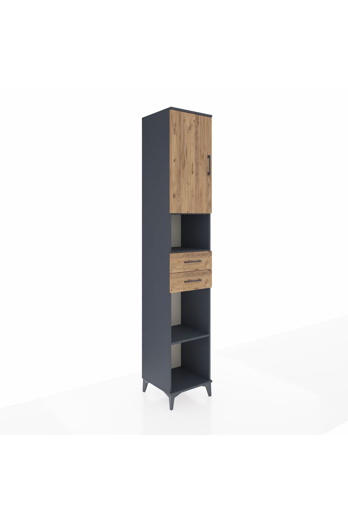 Hyperion Dolap 5 Raflı 2 Çekmeceli Tek Kapaklı 44x44x243 Antrasit-Çam