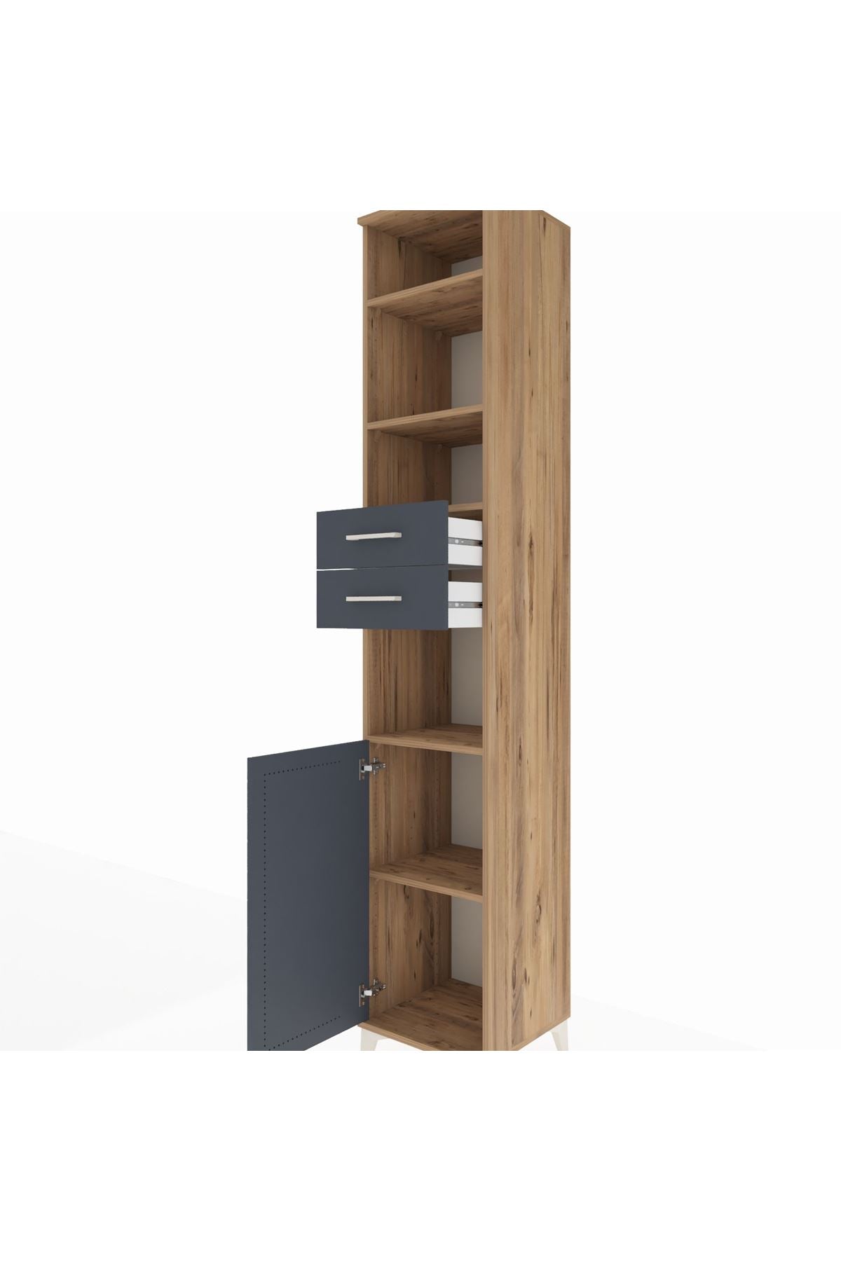 Hyperion Dolap 5 Raflı 2 Çekmeceli Tek Kapaklı 44x44x243 Çam-Antrasit