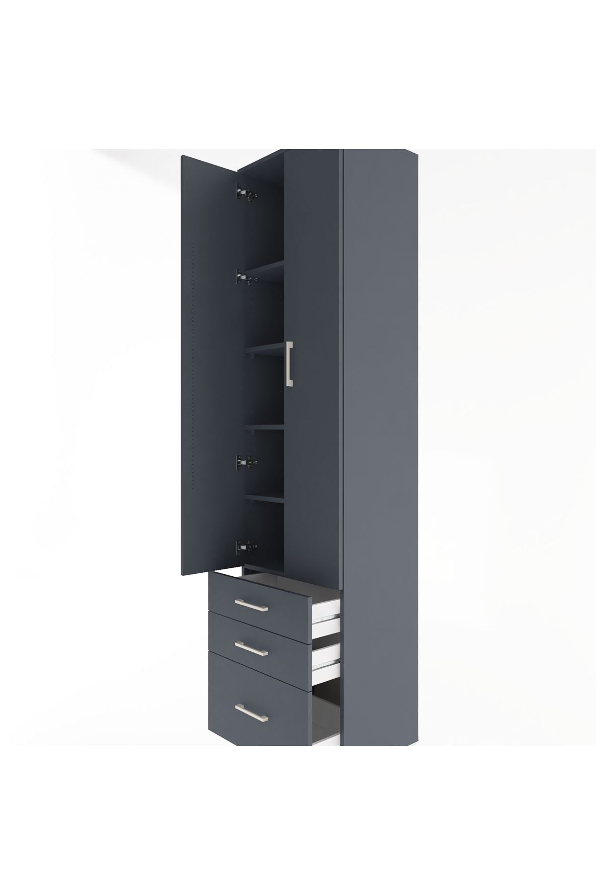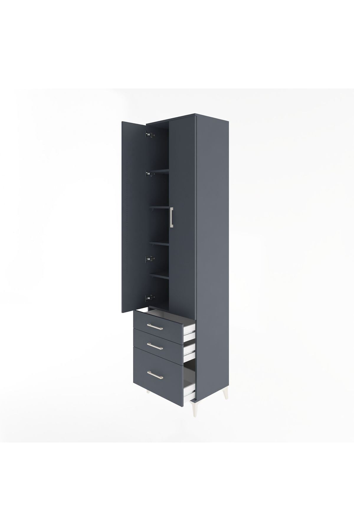 Hyperion Dolap 5 Raflı 3 Çekmeceli 2 Kapaklı 60x44x243 Antrasit-Antrasit