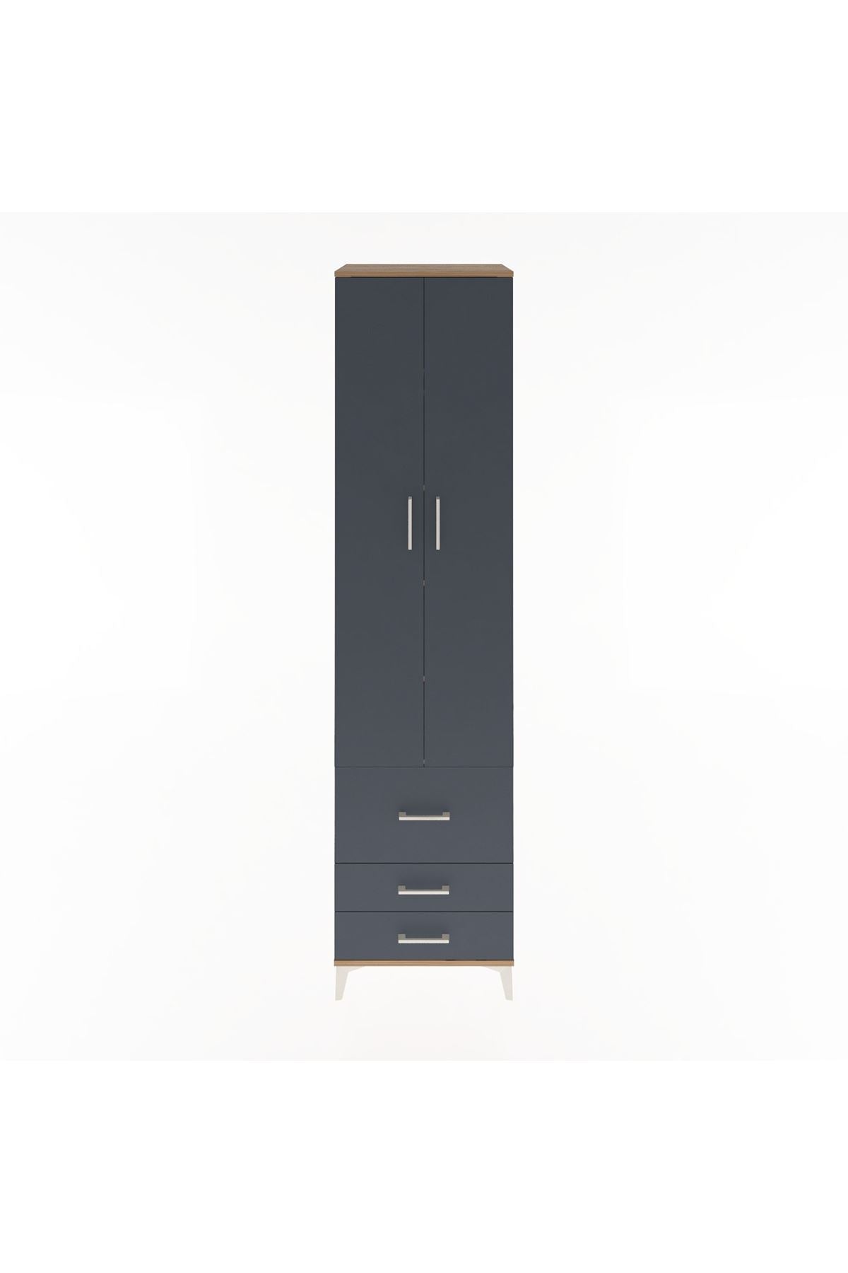 Hyperion Dolap 5 Raflı 3 Çekmeceli 2 Kapaklı 60x44x243 Çam-Antrasit