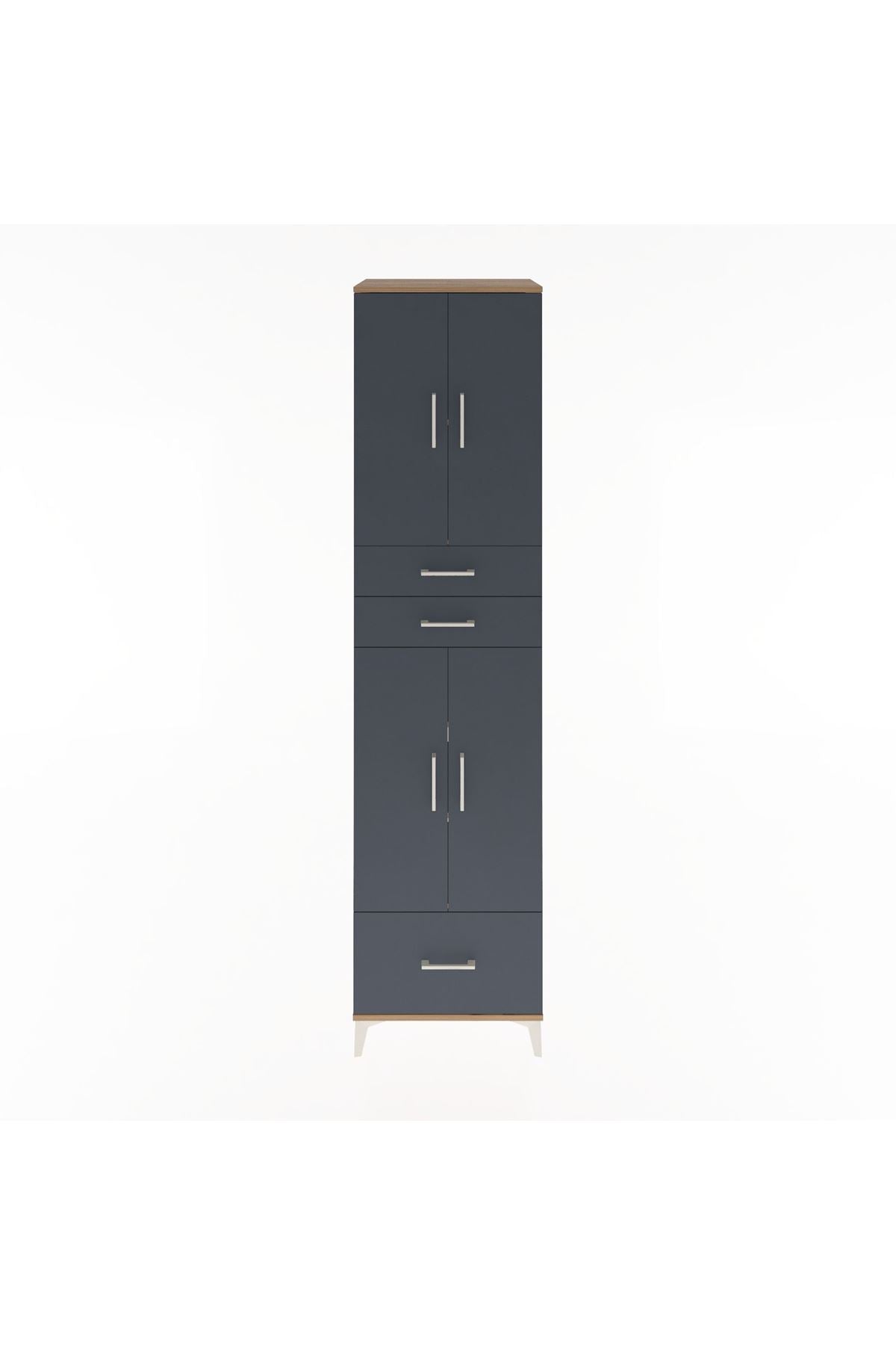 Hyperion Dolap 5 Raflı 3 Çekmeceli 4 Kapaklı 60x44x243 Çam-Antrasit