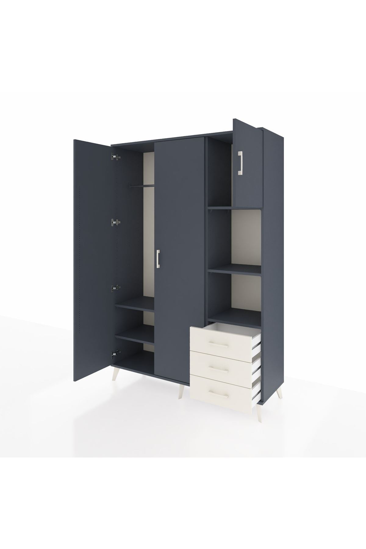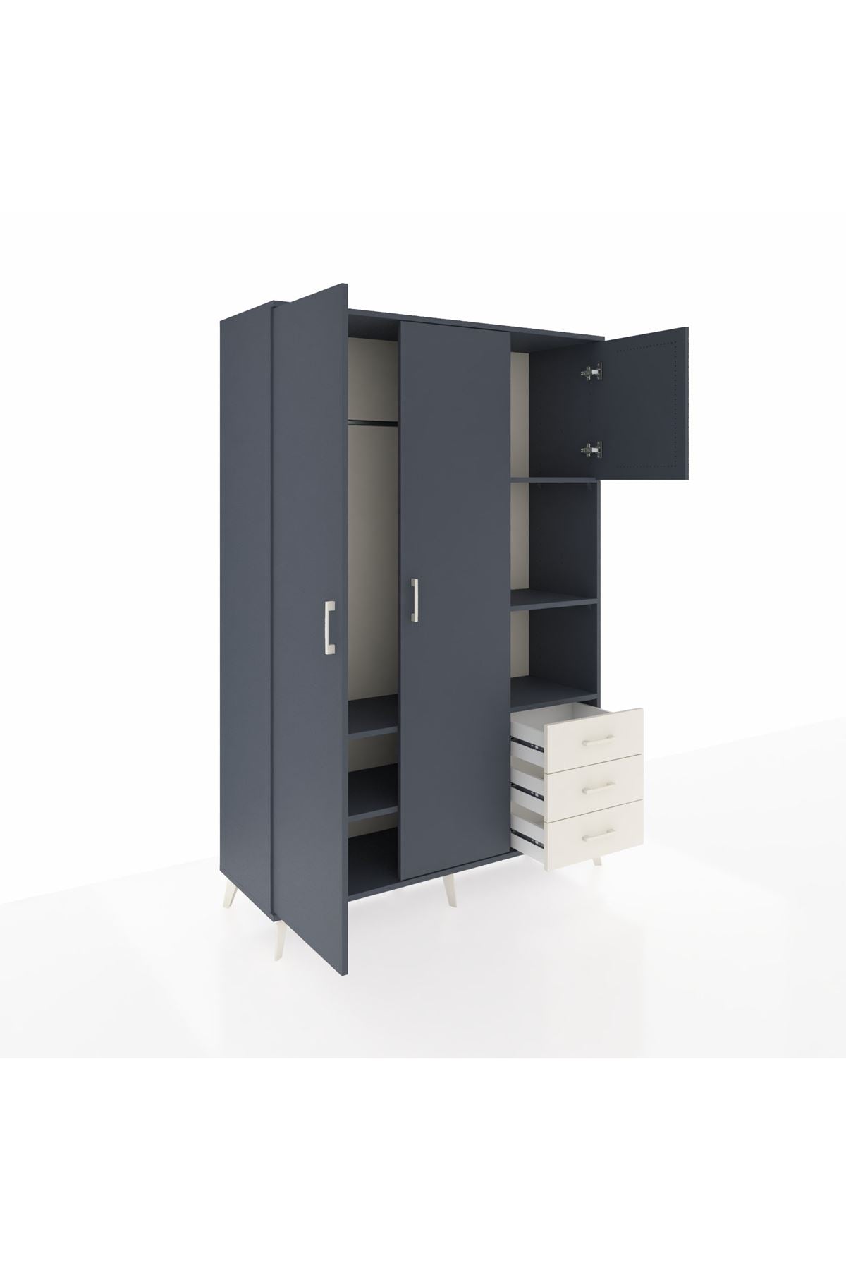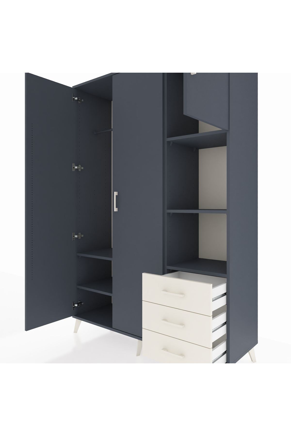 Hyperion Dolap 5 Raflı 3 Çekmeceli Tek Askılı 132x44x195 Antrasit-Antrasit/Aytaşı