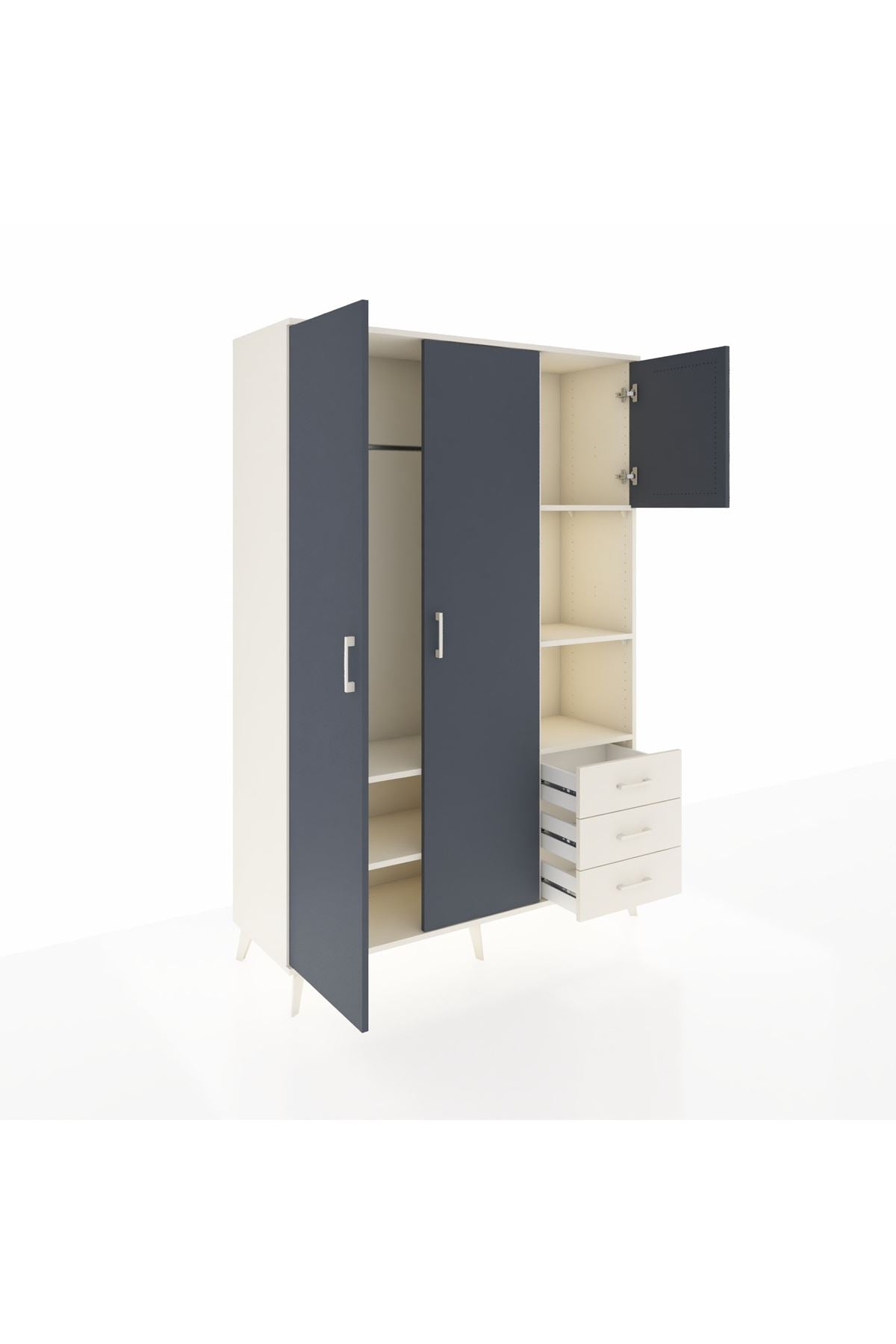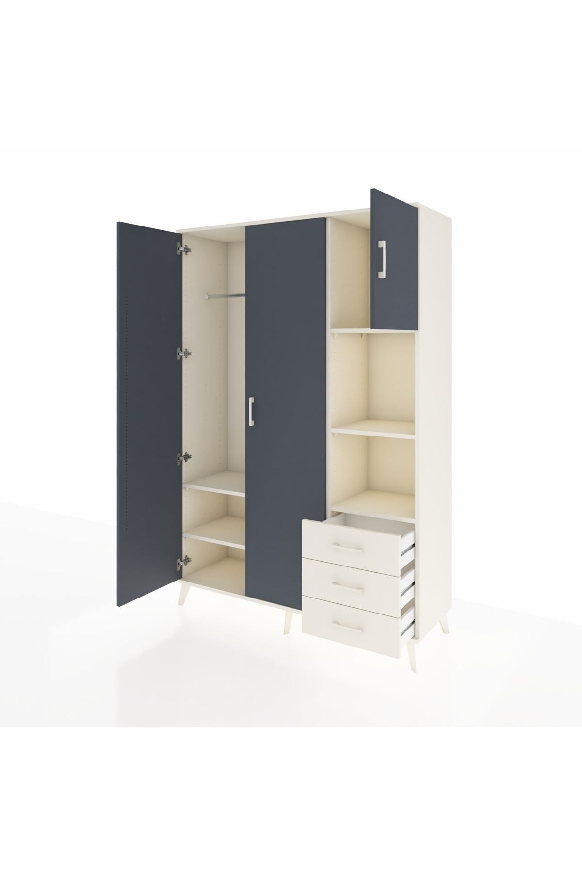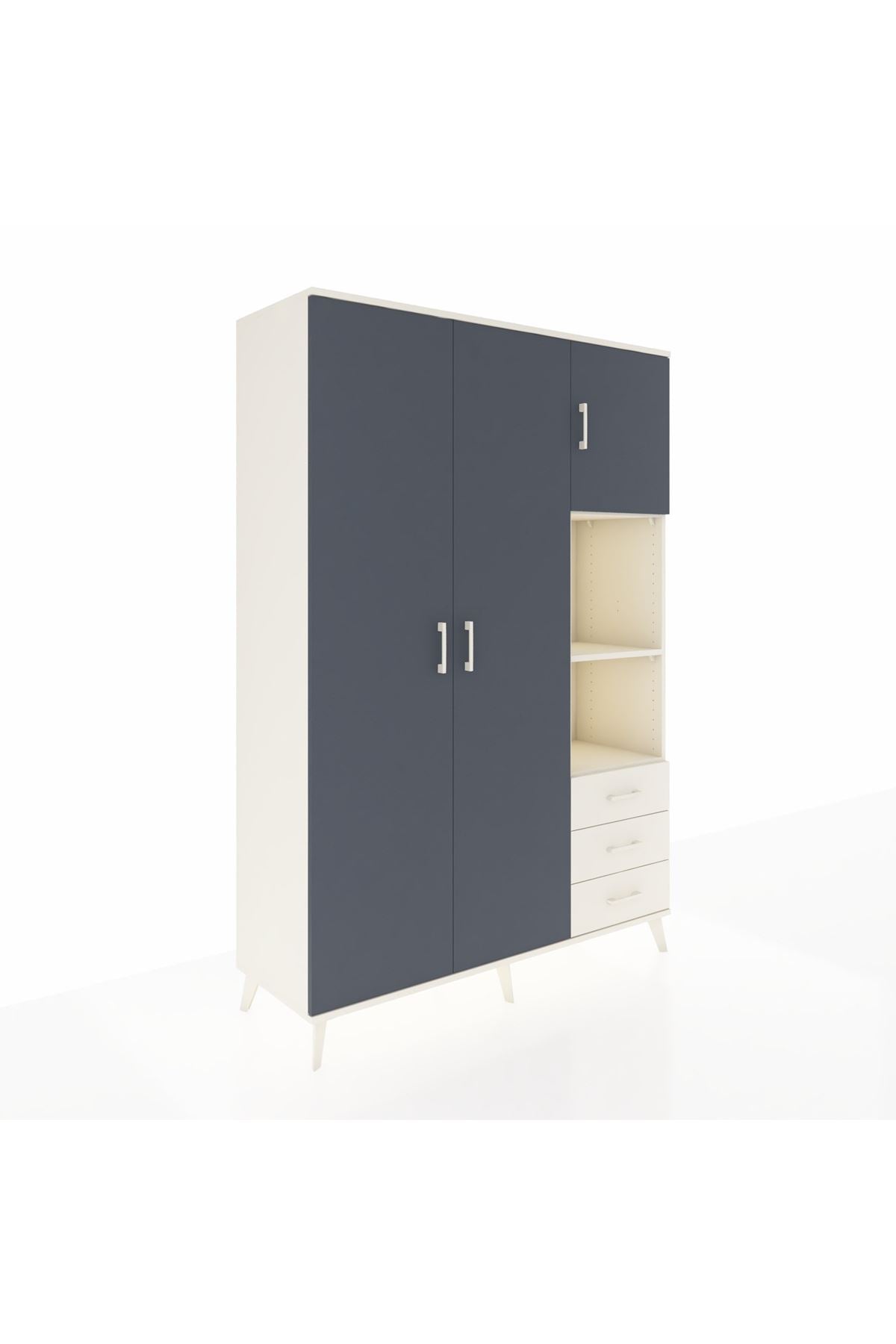 Hyperion Dolap 5 Raflı 3 Çekmeceli Tek Askılı 132x44x195 Aytaşı-Antrasit/Aytaşı