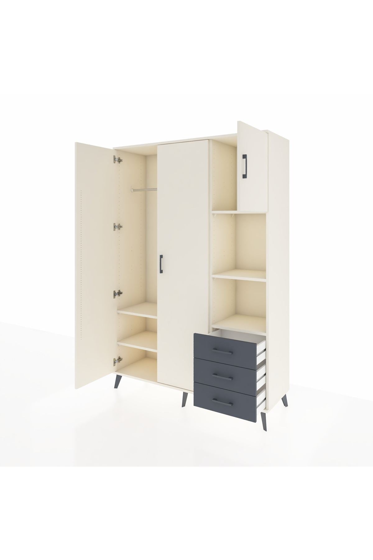 Hyperion Dolap 5 Raflı 3 Çekmeceli Tek Askılı 132x44x195 Aytaşı-Aytaşı/Antrasit