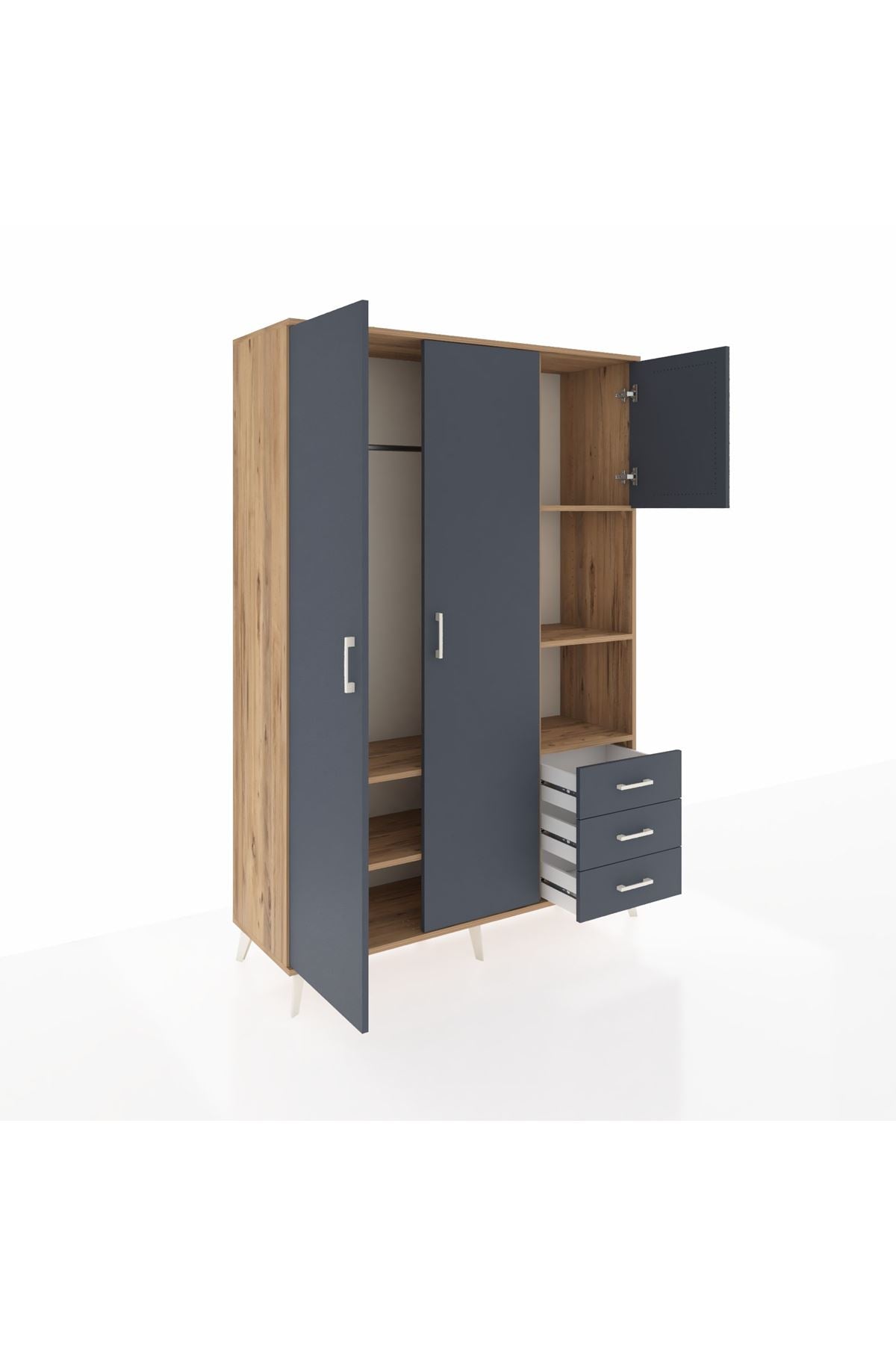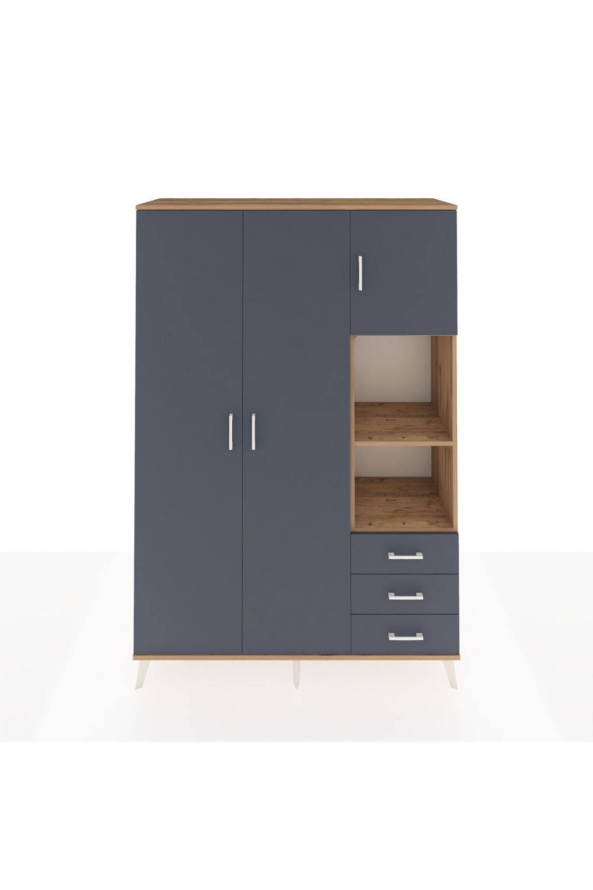 Hyperion Dolap 5 Raflı 3 Çekmeceli Tek Askılı 132x44x195 Çam-Antrasit/Antrasit