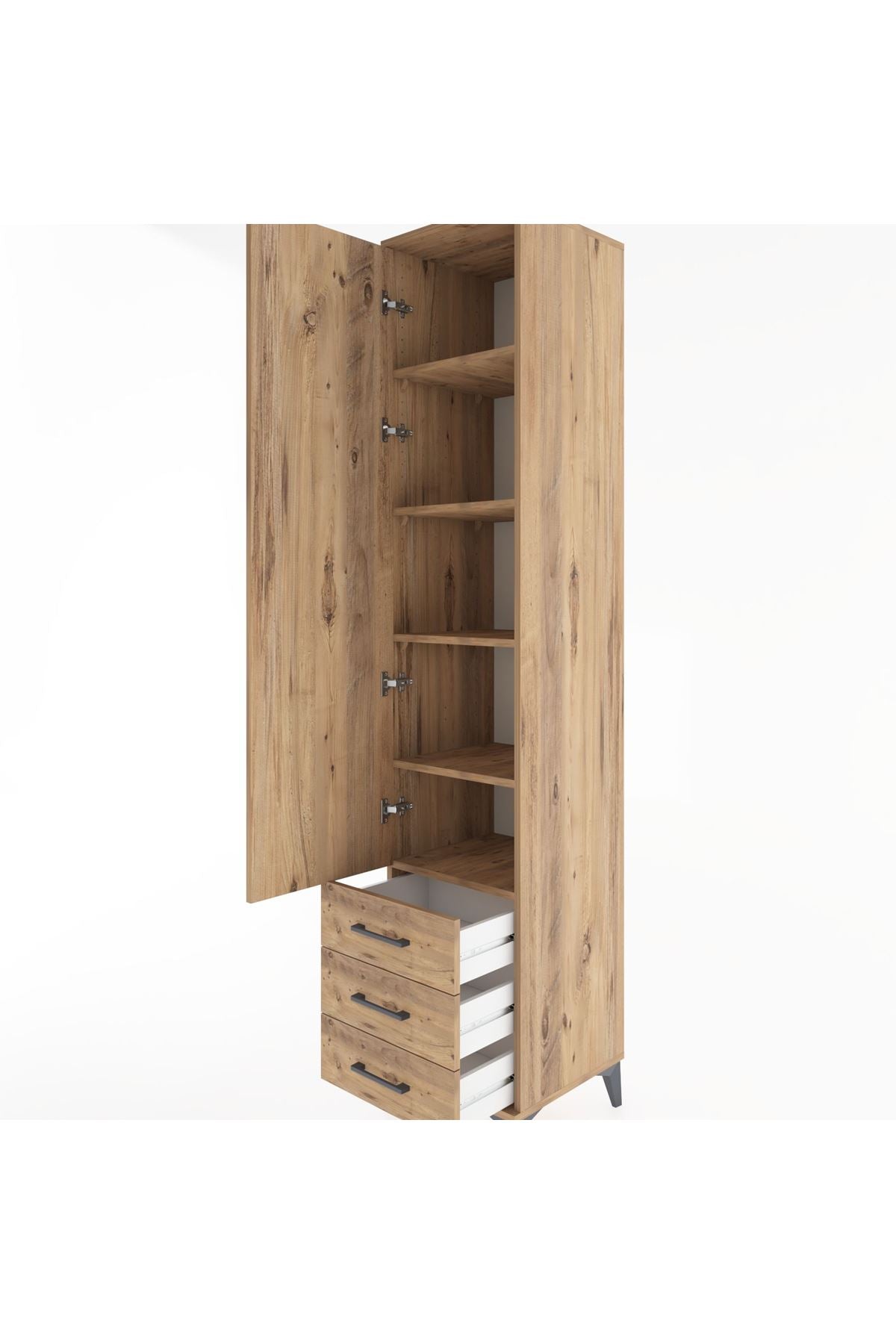 Hyperion Dolap 5 Raflı 3 Çekmeceli Tek Kapaklı 44x44x221 Çam-Çam