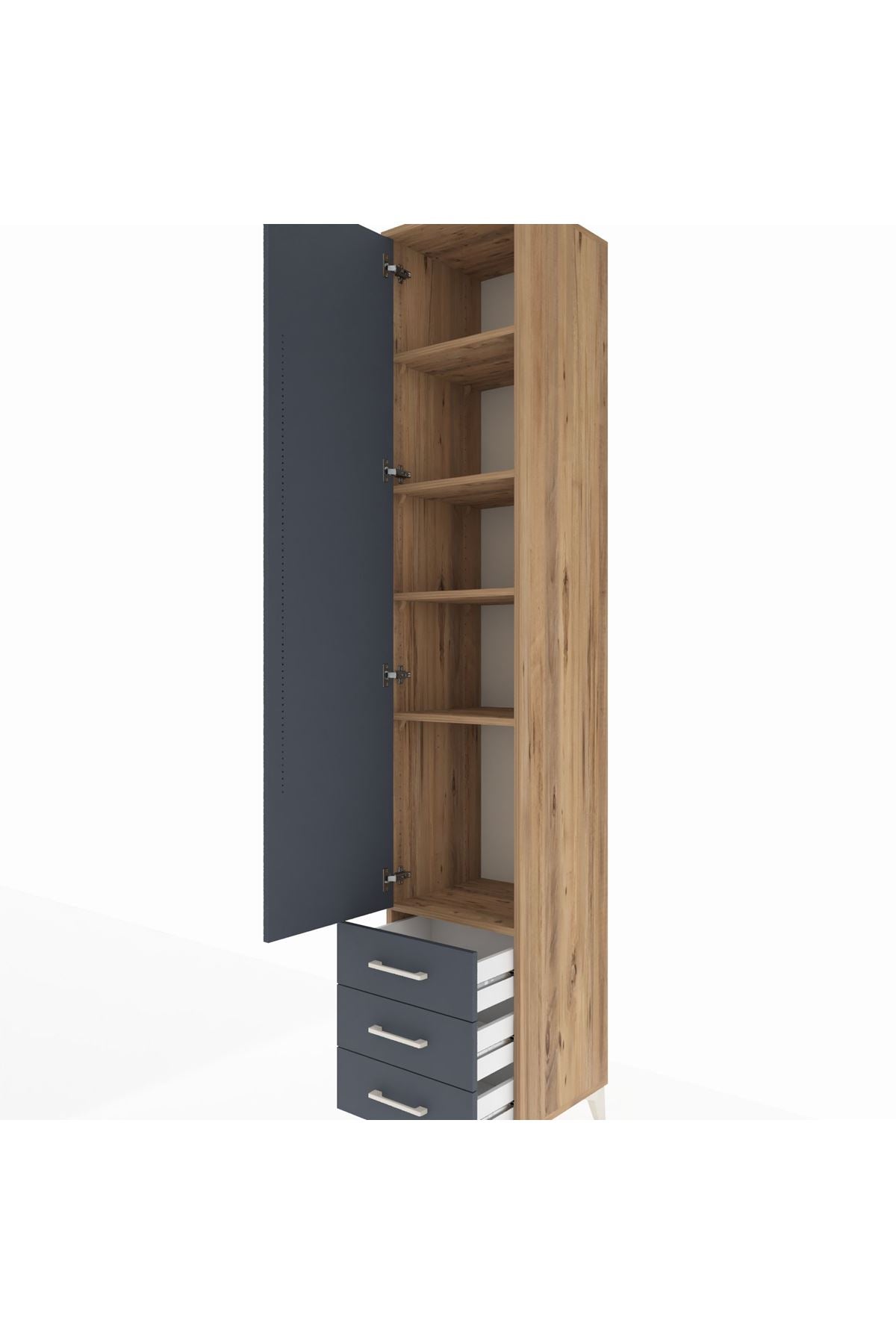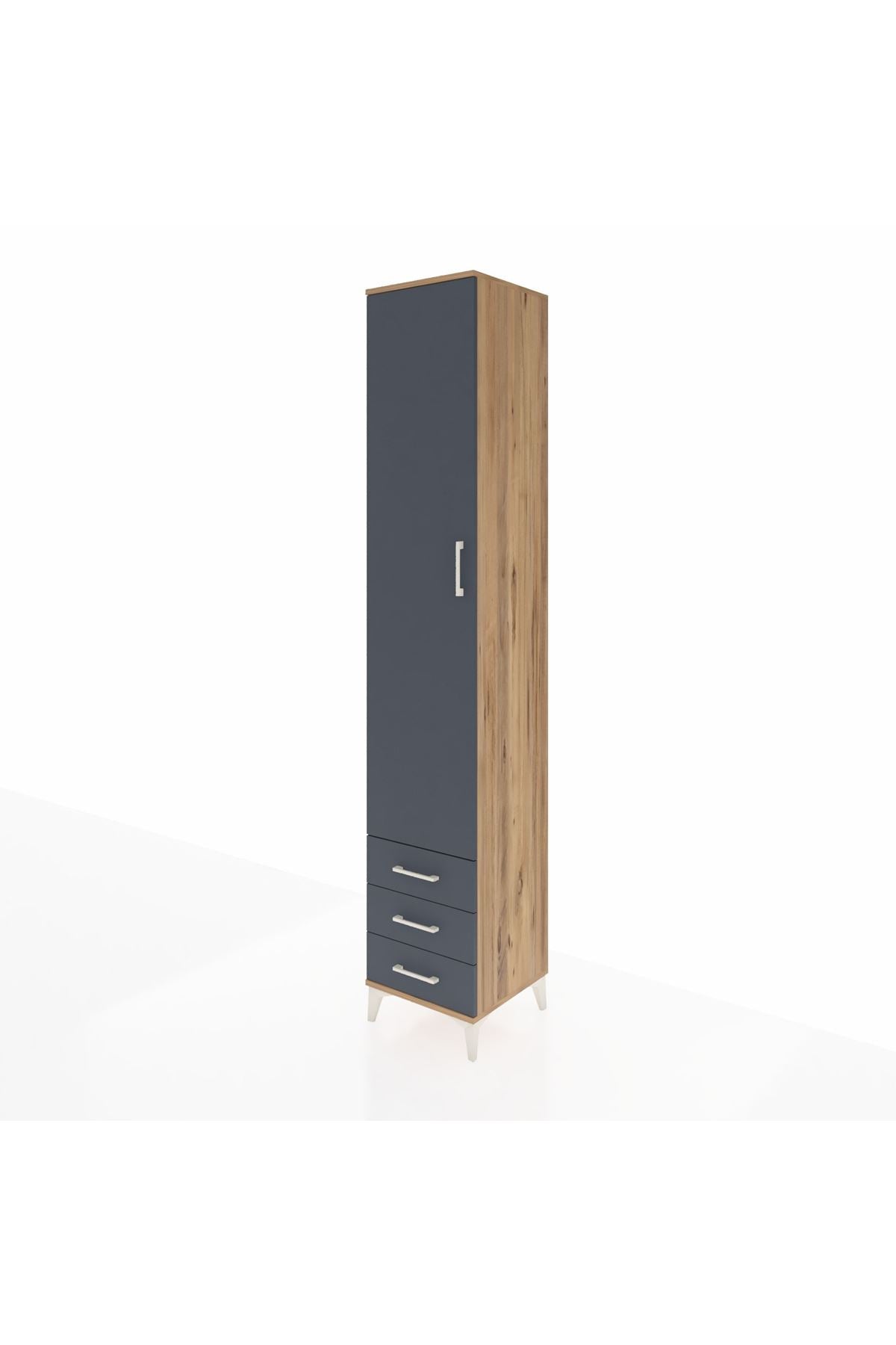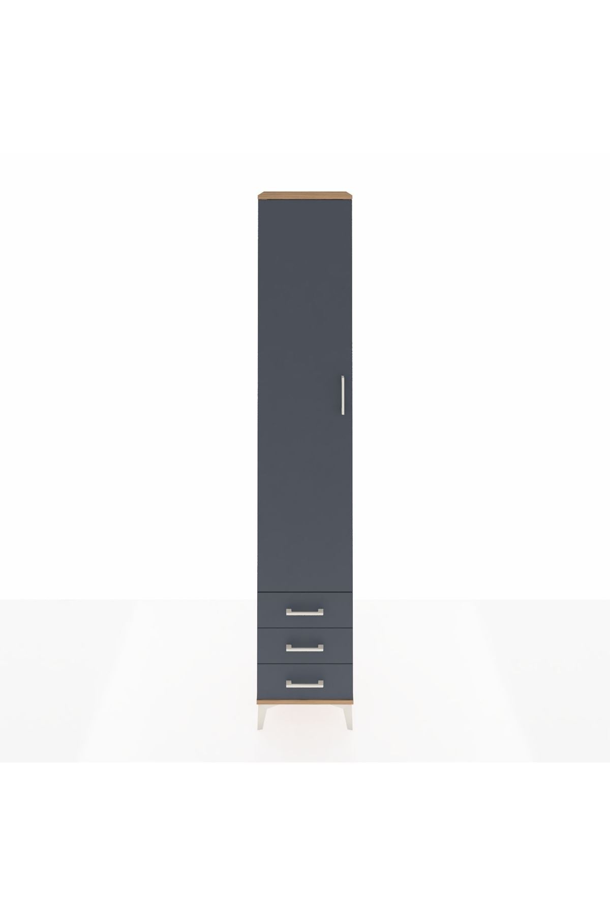 Hyperion Dolap 5 Raflı 3 Çekmeceli Tek Kapaklı 44x44x243 Çam-Antrasit