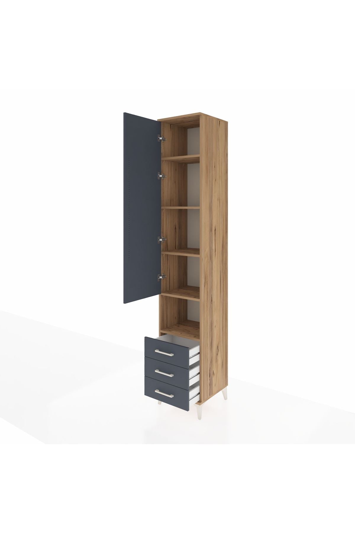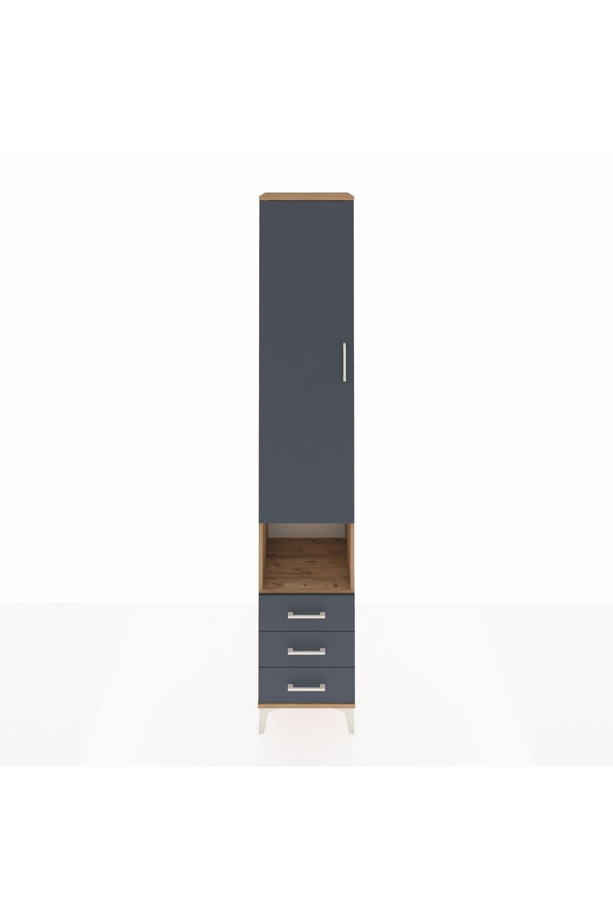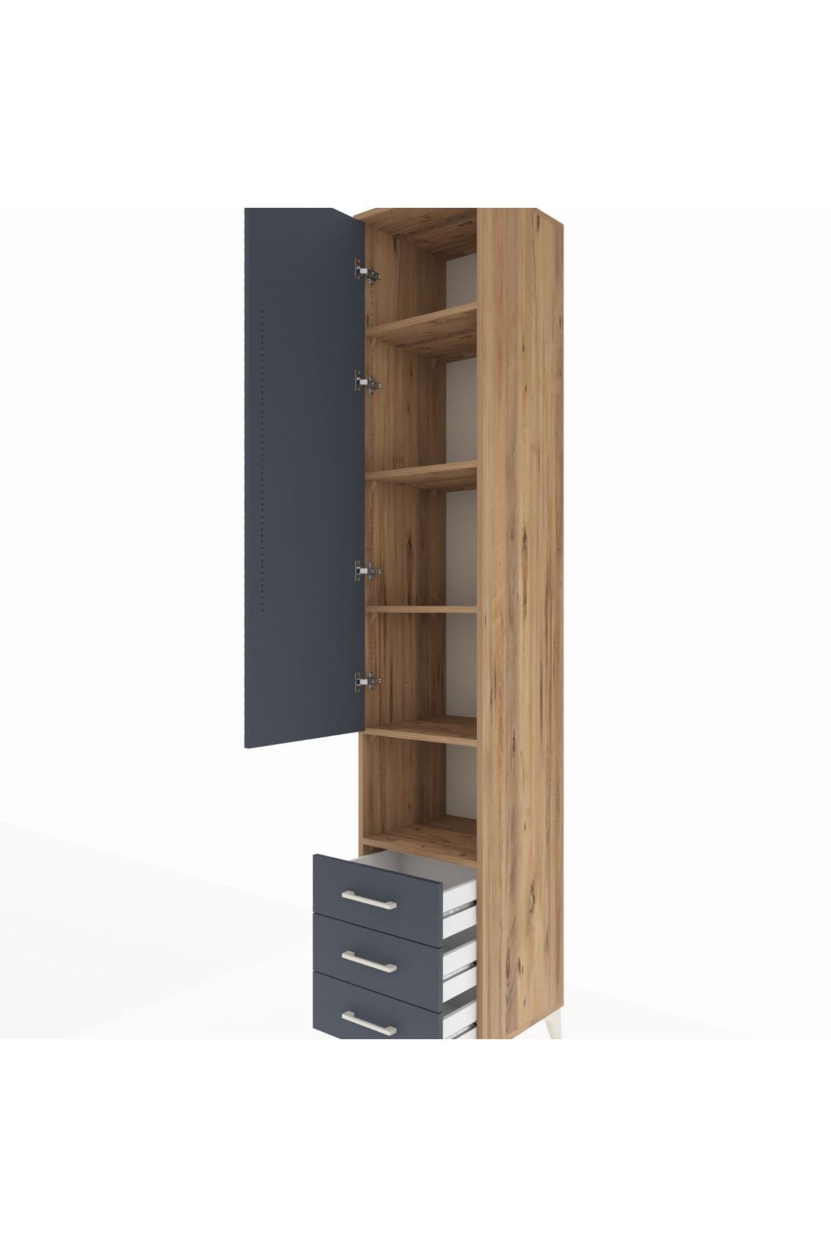 Hyperion Dolap 5 Raflı 3 Çekmeceli Tek Kapaklı 44x44x243 Çam-Antrasit
