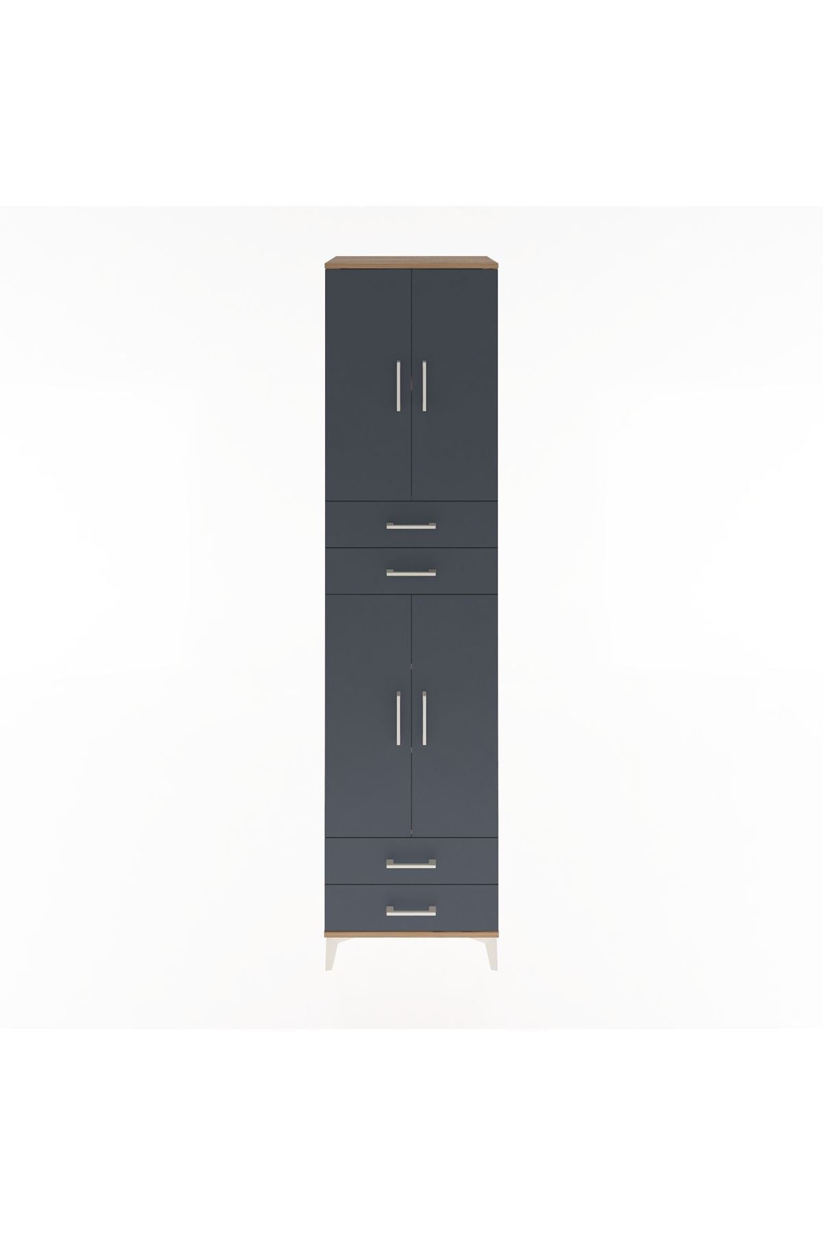 Hyperion Dolap 5 Raflı 4 Çekmeceli 4 Kapaklı 60x44x243 Çam-Antrasit