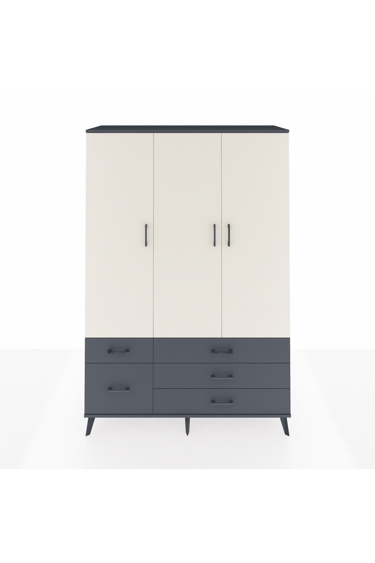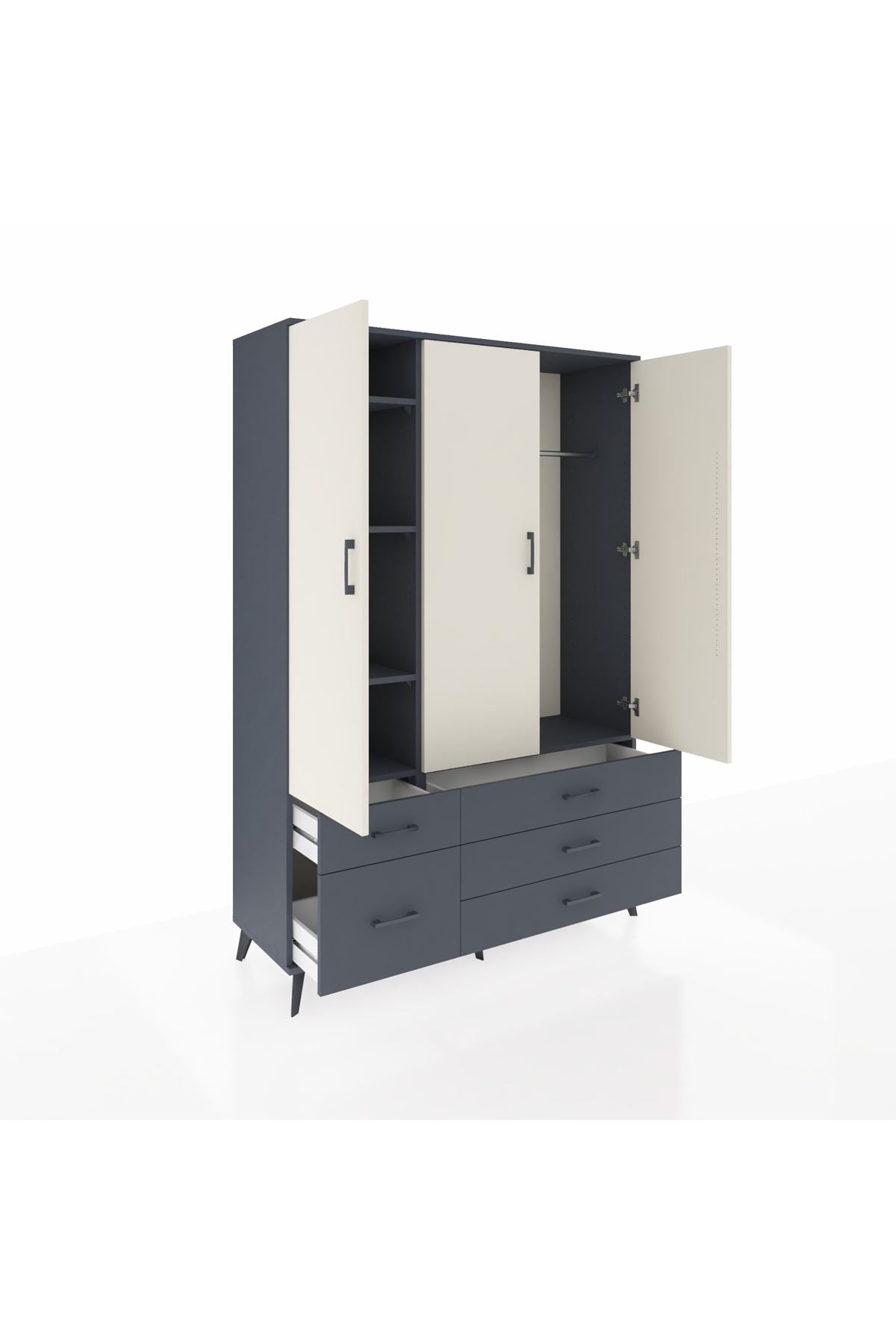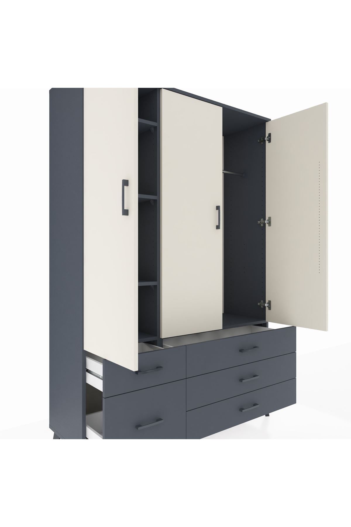 Hyperion Dolap 5 Raflı 5 Çekmeceli Tek Askılı 132x44x195 Antrasit-Aytaşı/Antrasit