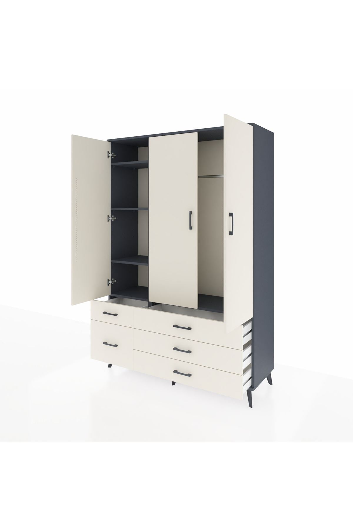 Hyperion Dolap 5 Raflı 5 Çekmeceli Tek Askılı 132x44x195 Antrasit-Aytaşı/Aytaşı
