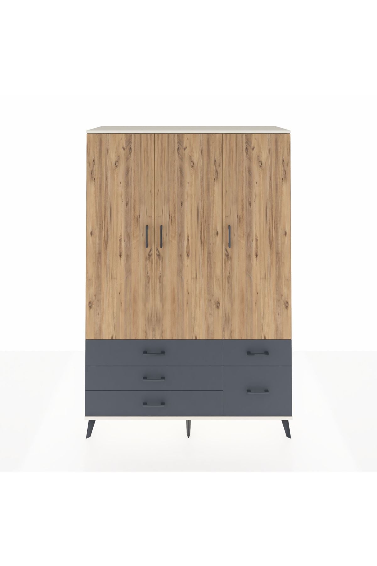 Hyperion Dolap 5 Raflı 5 Çekmeceli Tek Askılı 132x44x195 Aytaşı-Çam/Antrasit