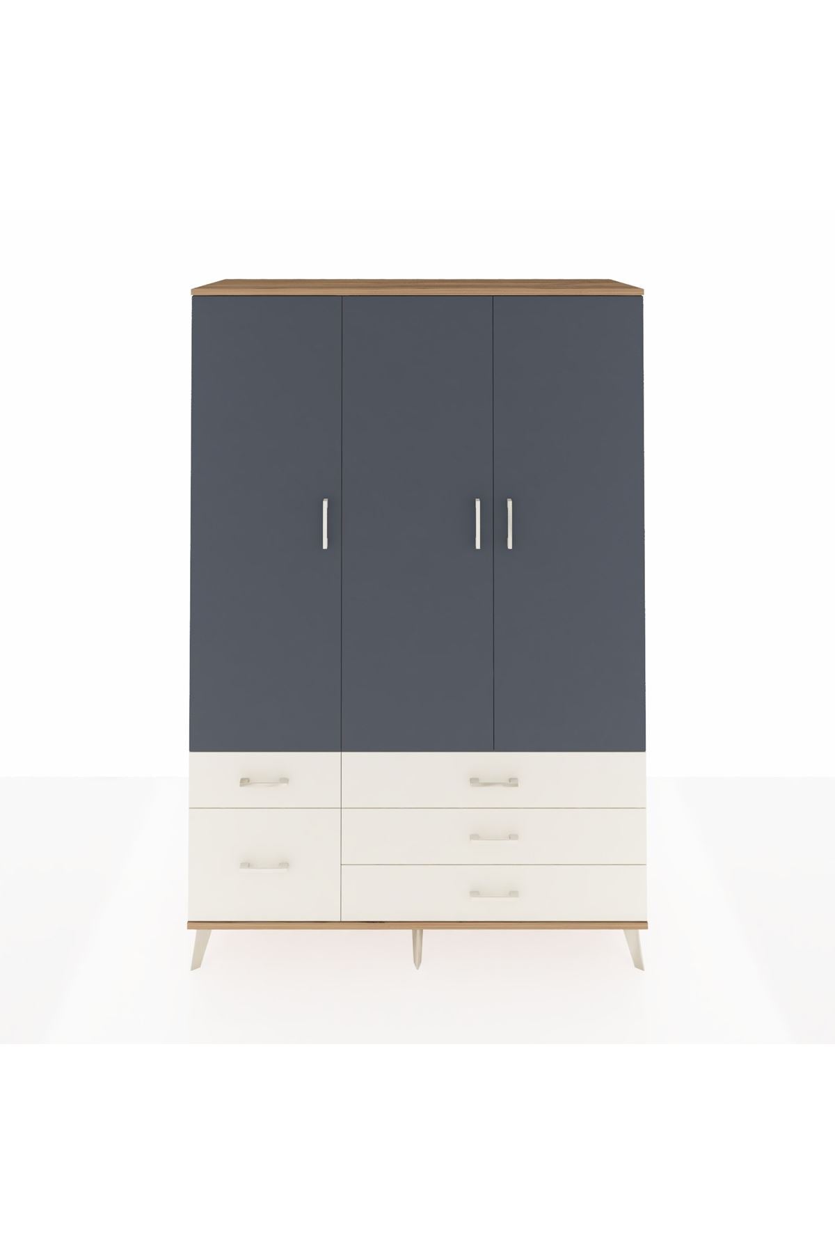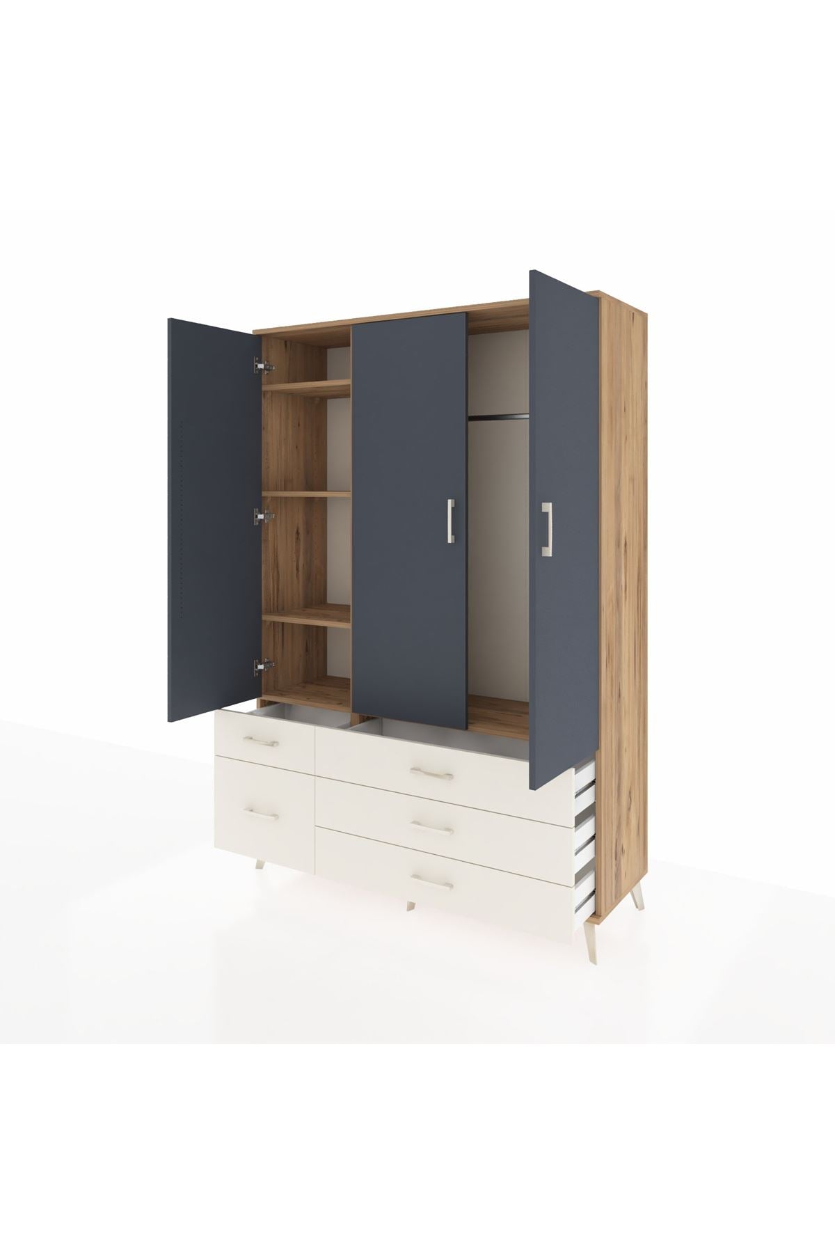 Hyperion Dolap 5 Raflı 5 Çekmeceli Tek Askılı 132x44x195 Çam-Antrasit/Aytaşı