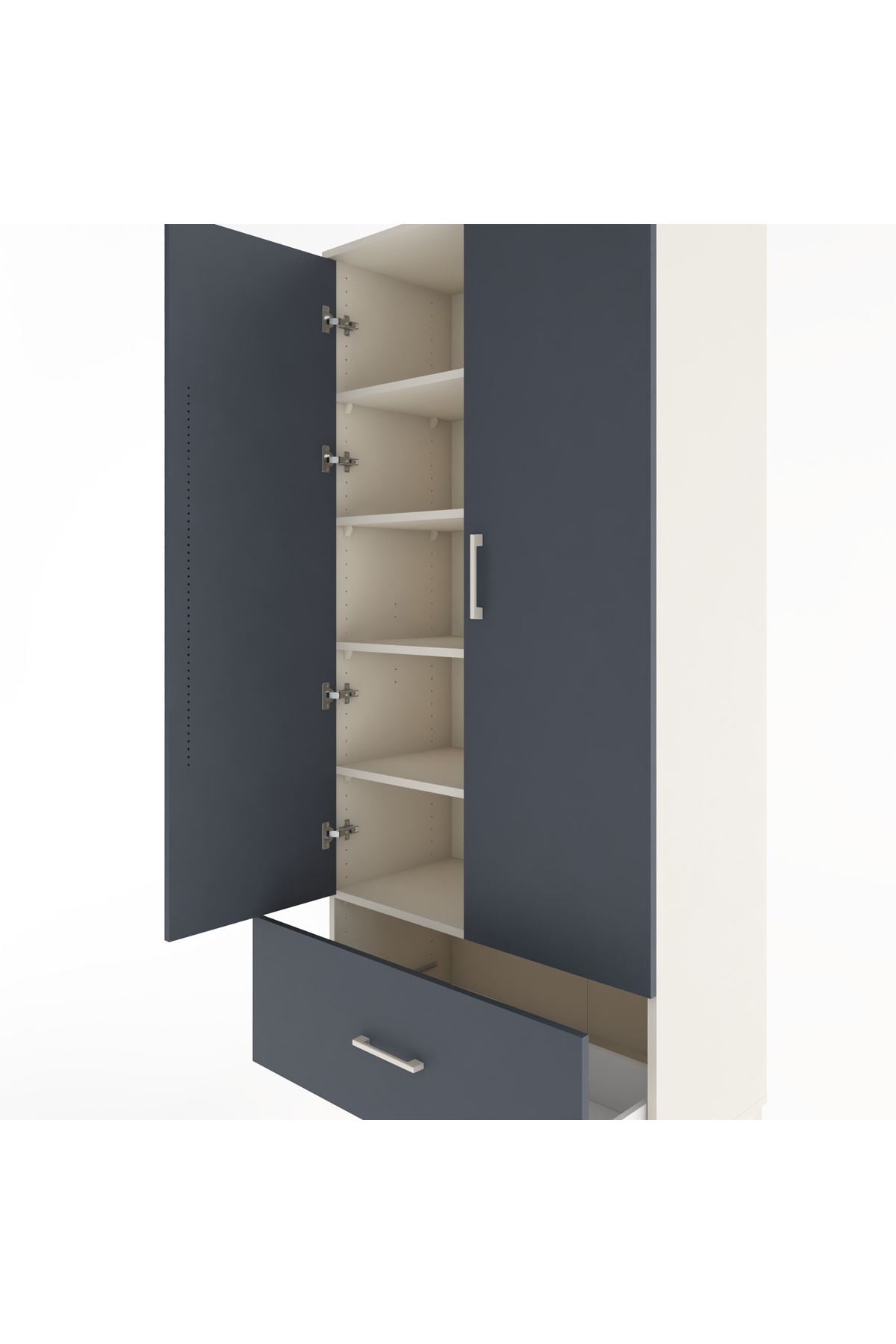 Hyperion Dolap 5 Raflı Tek Çekmeceli 2 Kapaklı 88x44x195 Aytaşı-Antrasit
