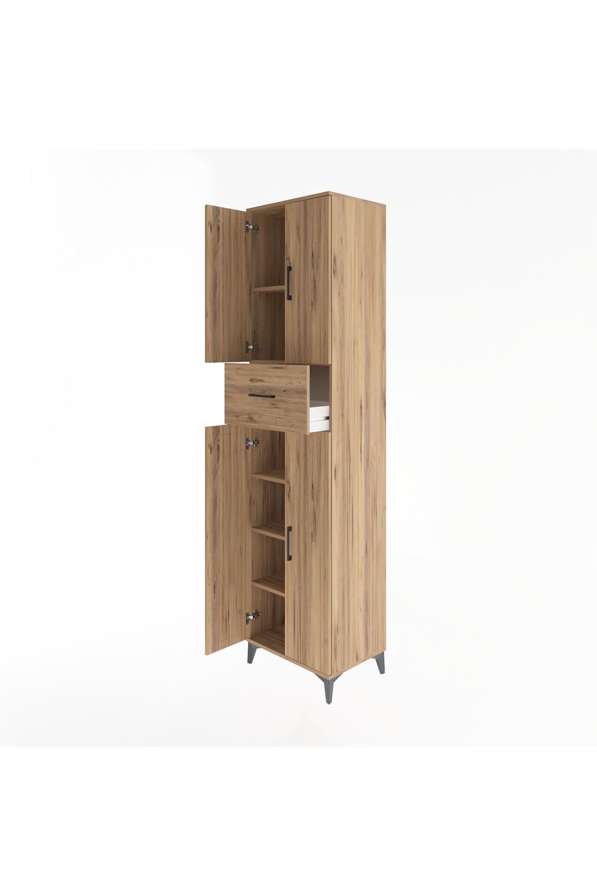 Hyperion Dolap 5 Raflı Tek Çekmeceli 4 Kapaklı 60x44x243 Çam-Çam