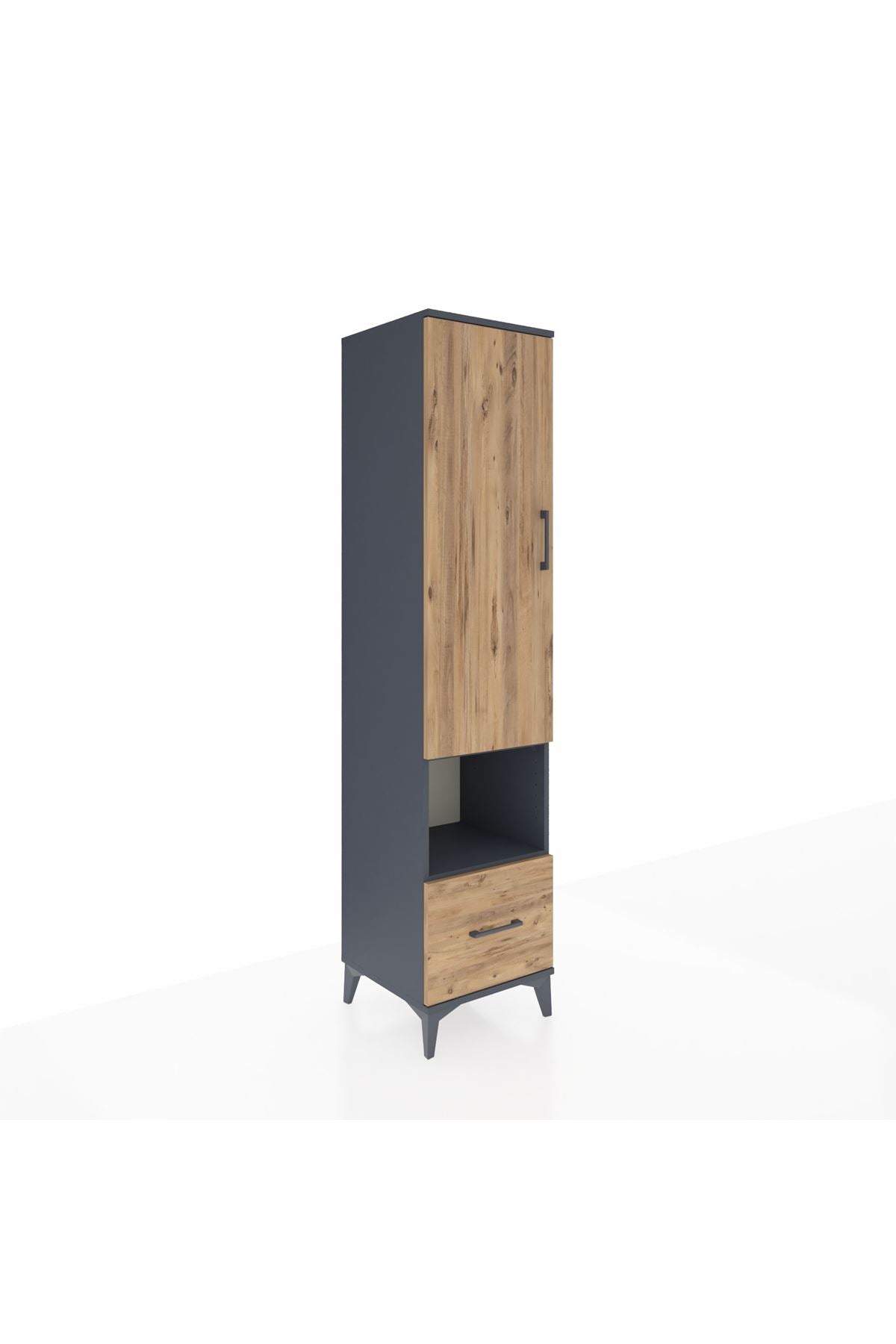 Hyperion Dolap 5 Raflı Tek Çekmeceli Tek Kapaklı 44x44x195 Antrasit-Çam
