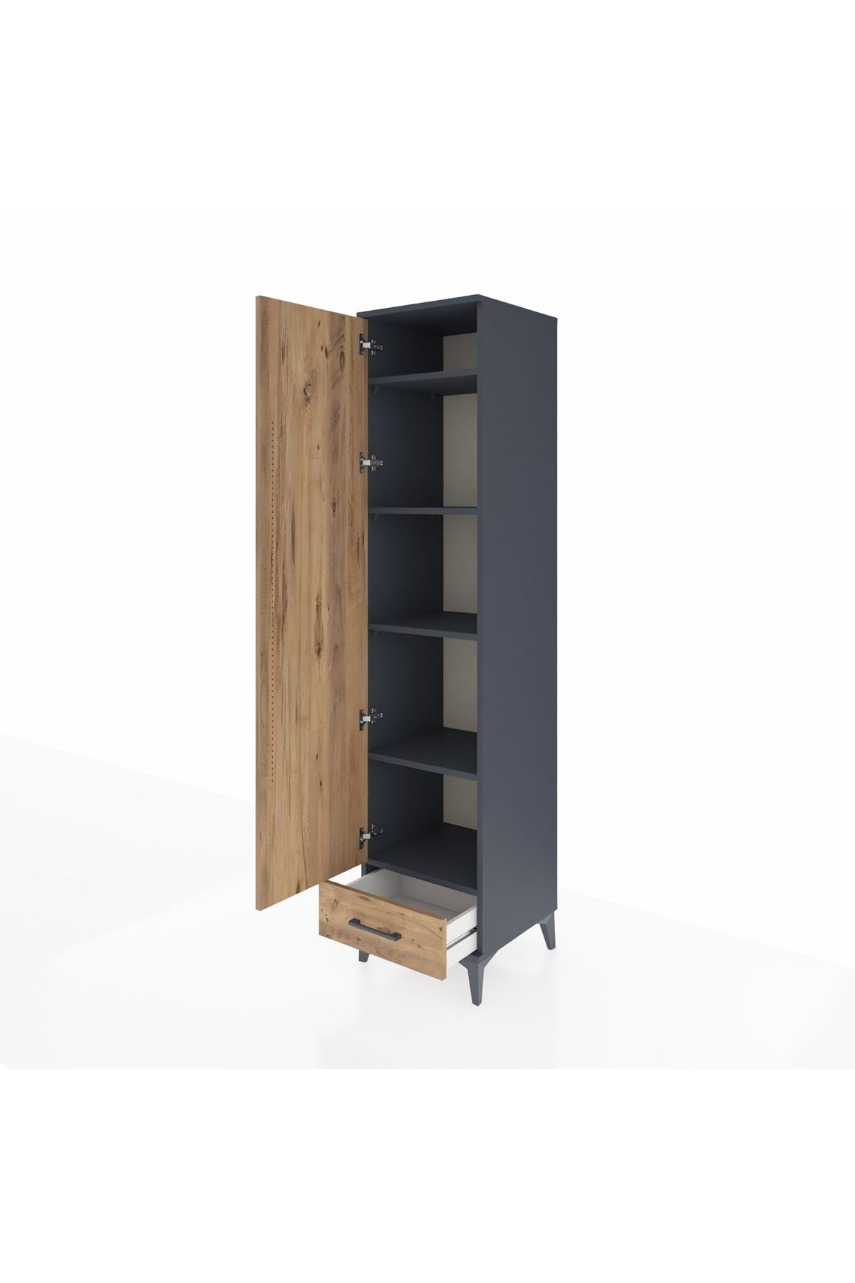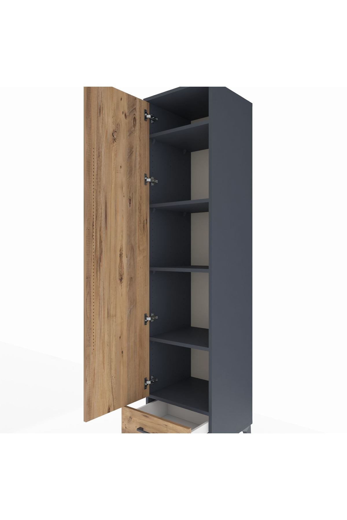 Hyperion Dolap 5 Raflı Tek Çekmeceli Tek Kapaklı 44x44x195 Antrasit-Çam