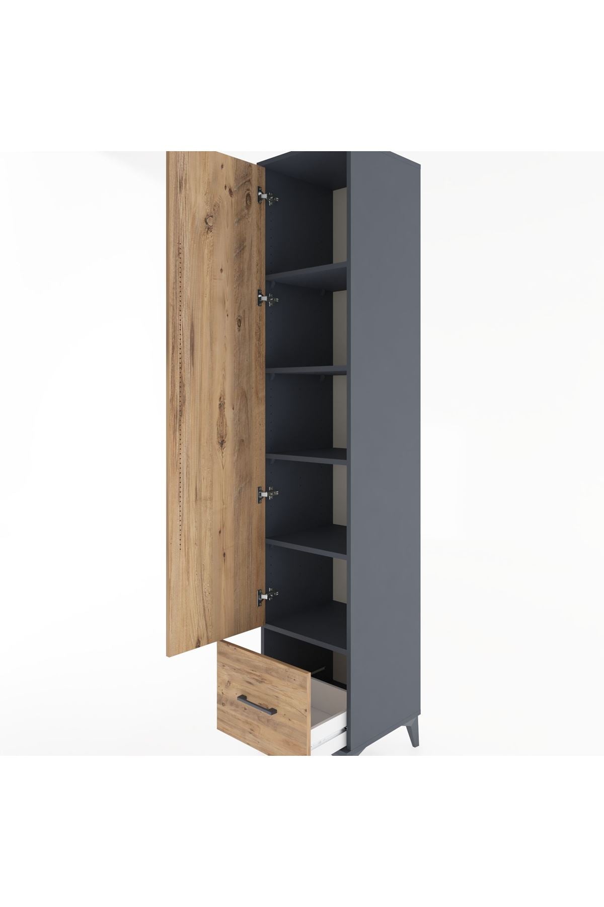 Hyperion Dolap 5 Raflı Tek Çekmeceli Tek Kapaklı 44x44x221 Antrasit-Çam