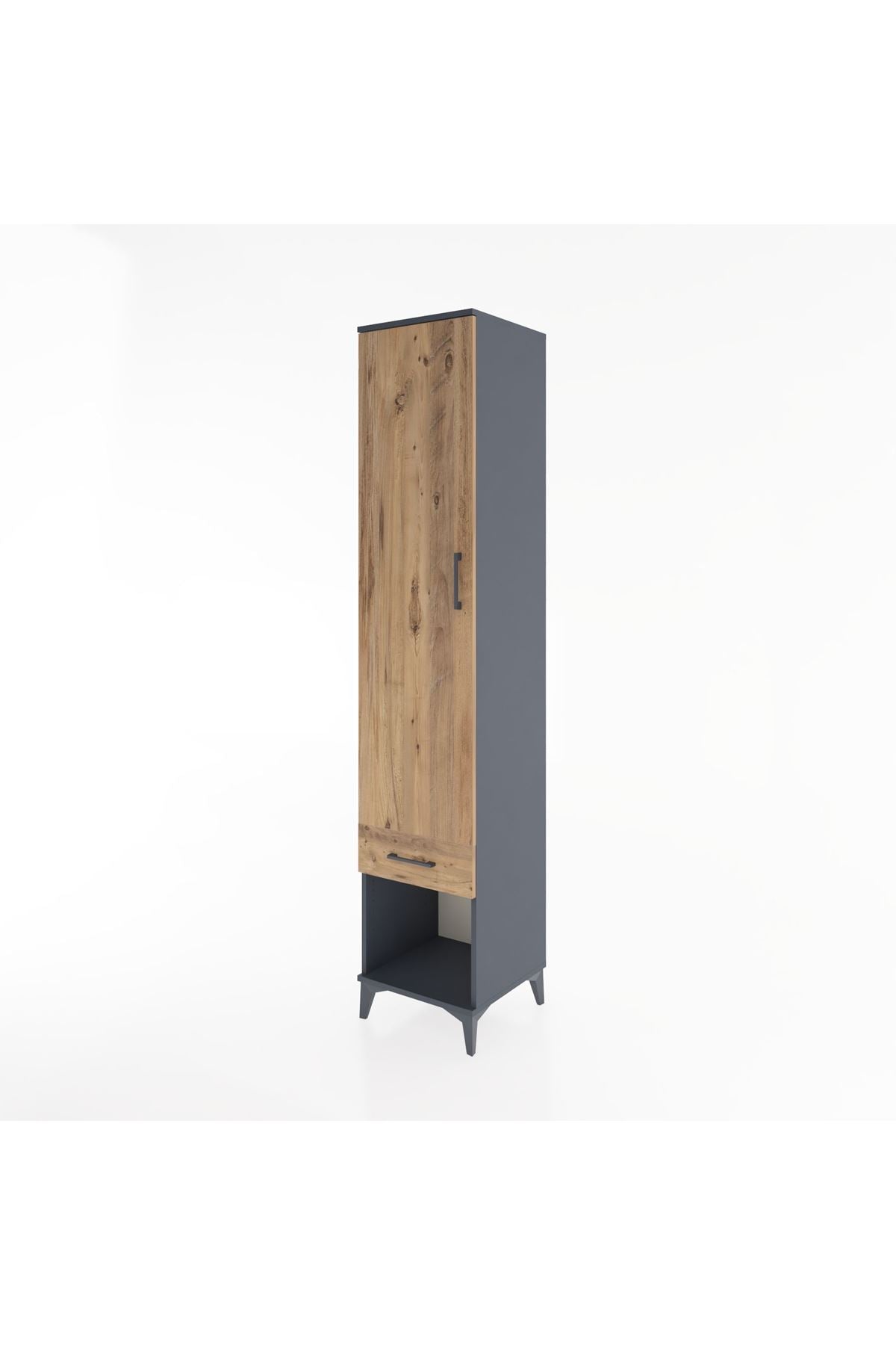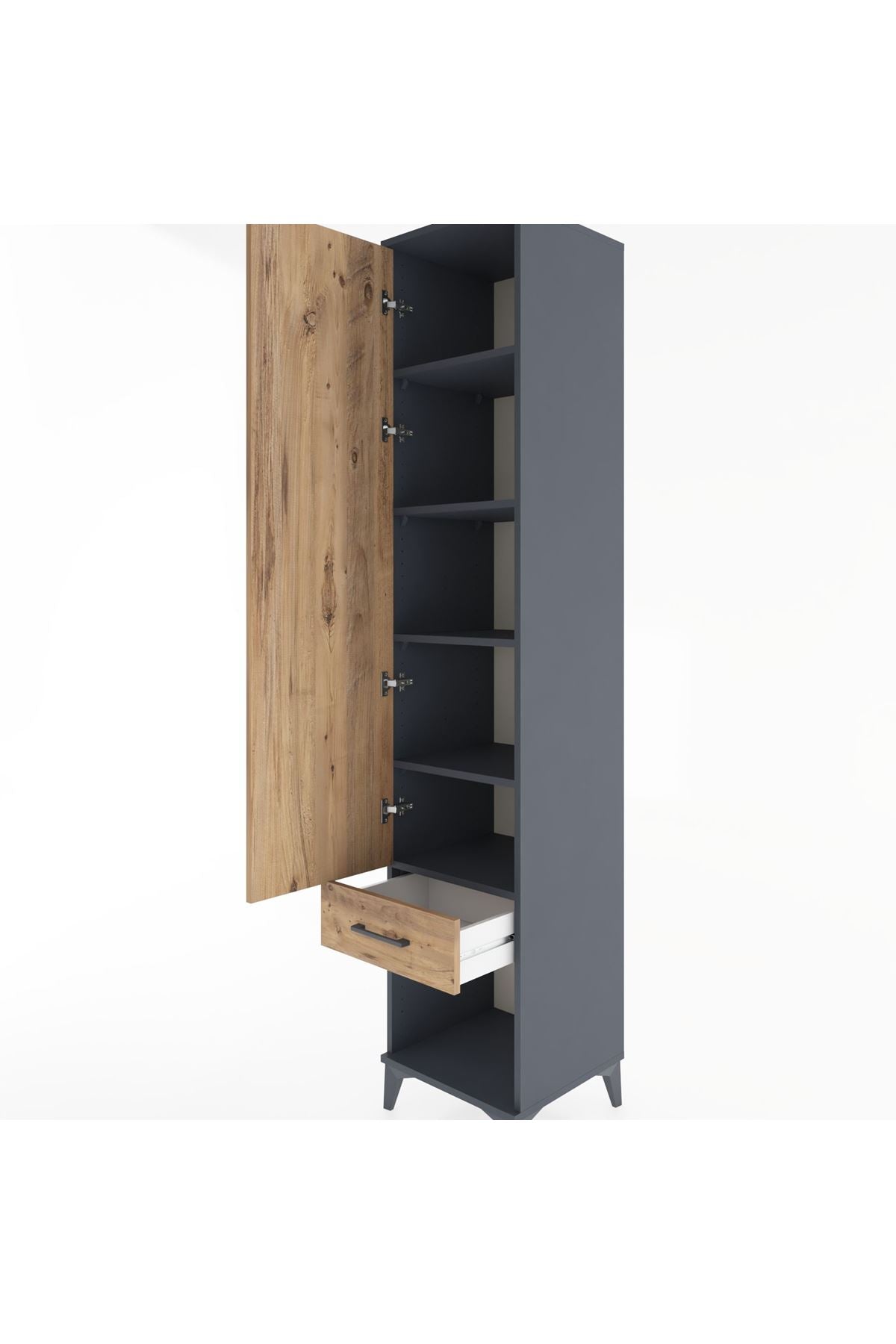 Hyperion Dolap 5 Raflı Tek Çekmeceli Tek Kapaklı 44x44x221 Antrasit-Çam