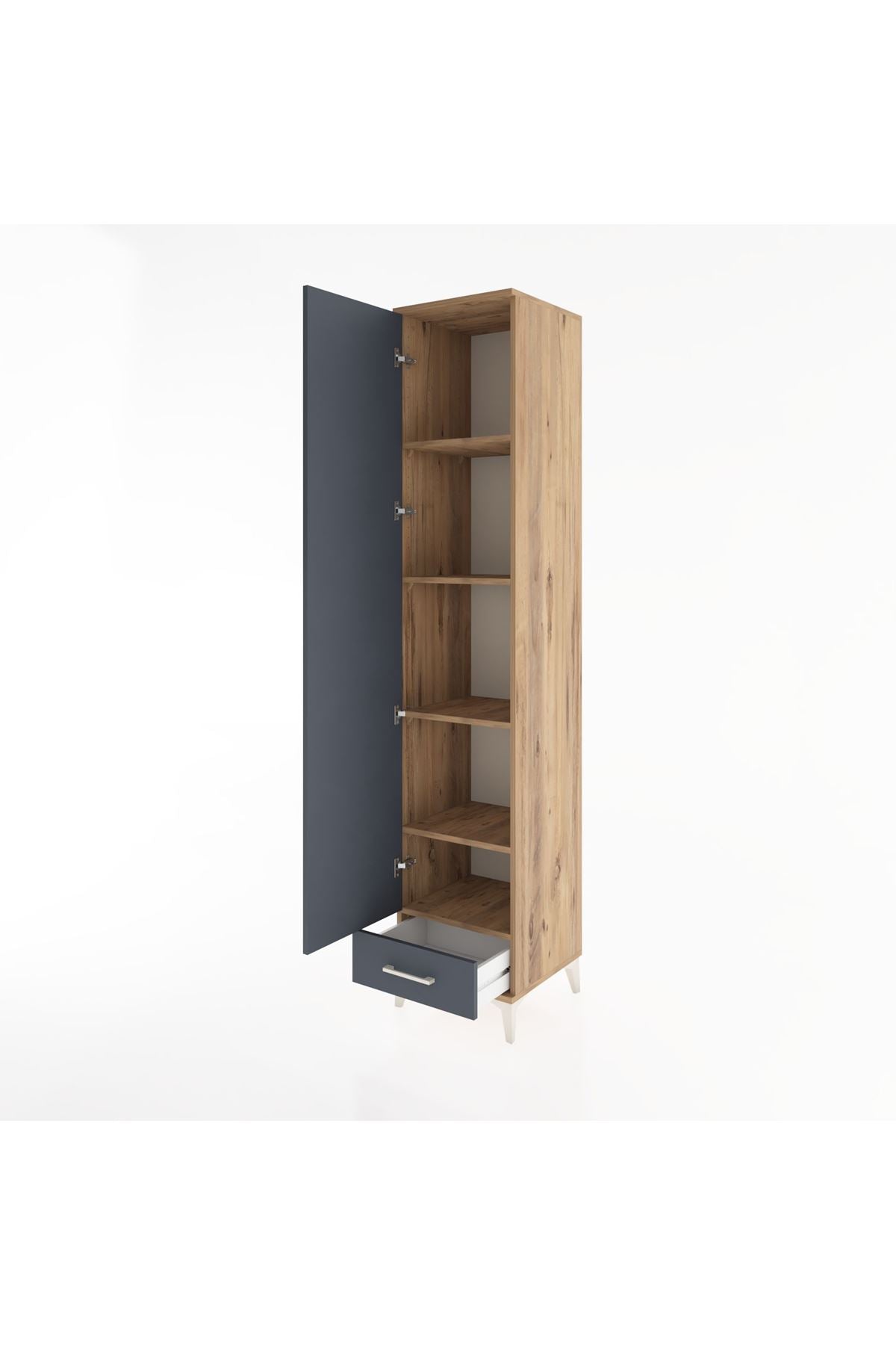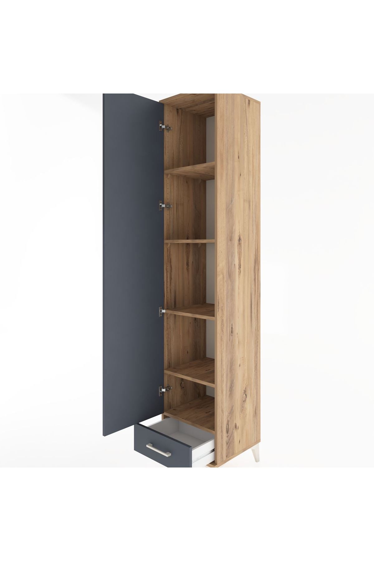 Hyperion Dolap 5 Raflı Tek Çekmeceli Tek Kapaklı 44x44x221 Çam-Antrasit