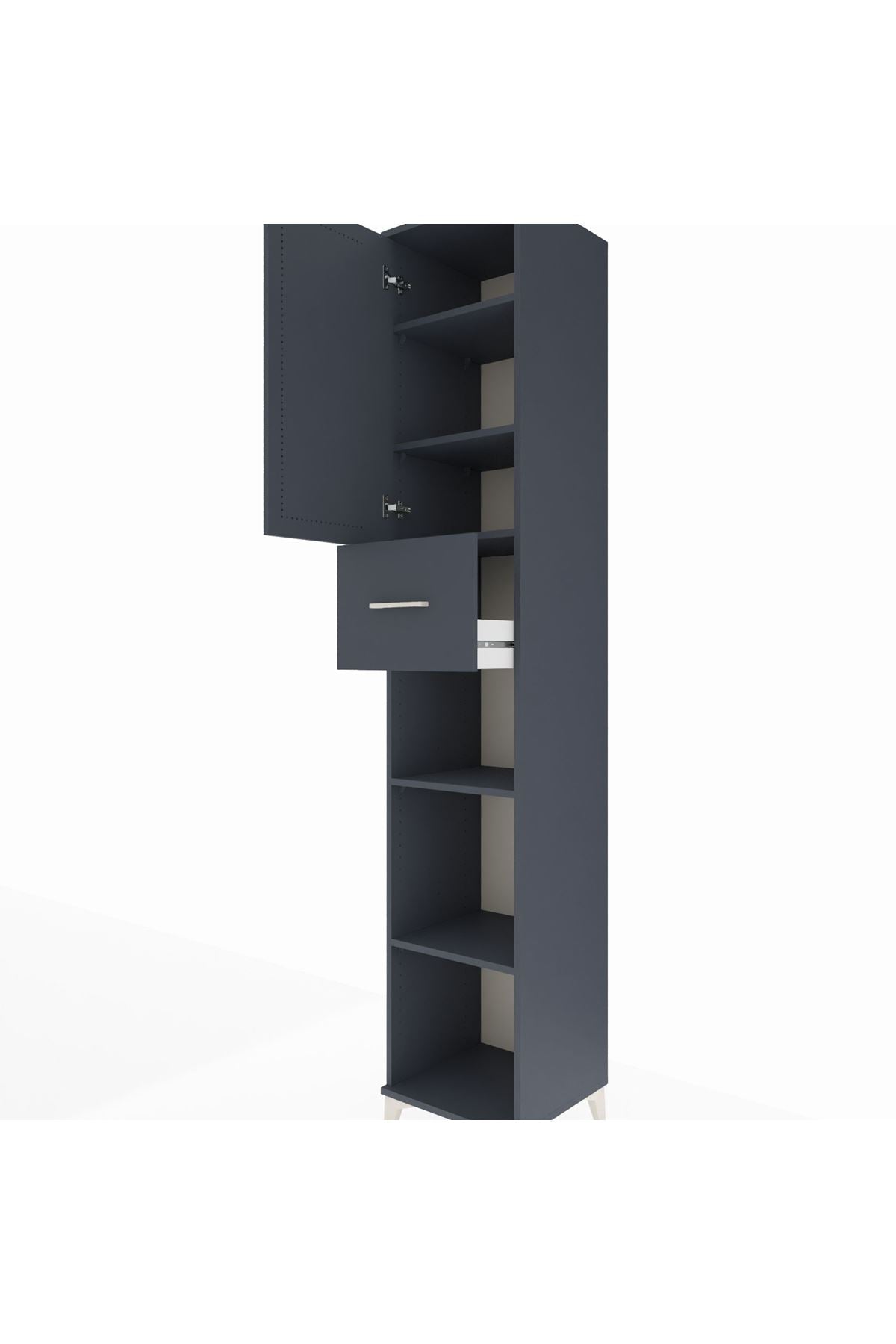 Hyperion Dolap 5 Raflı Tek Çekmeceli Tek Kapaklı 44x44x243 Antrasit-Antrasit