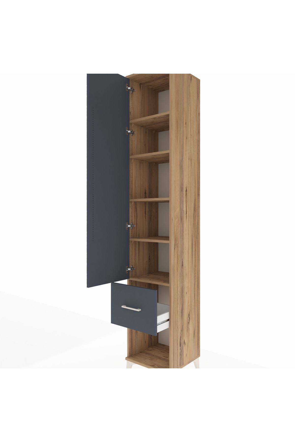 Hyperion Dolap 5 Raflı Tek Çekmeceli Tek Kapaklı 44x44x243 Çam-Antrasit