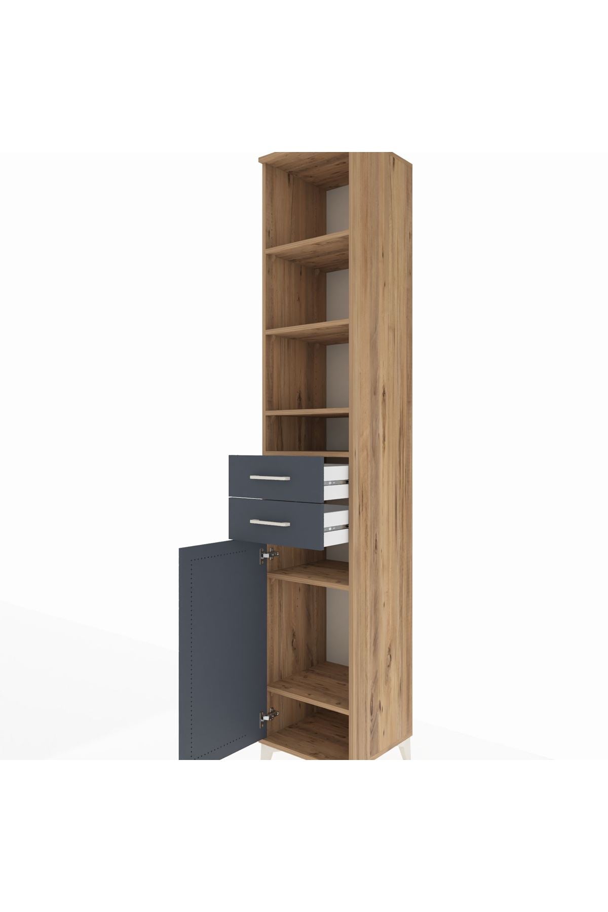 Hyperion Dolap 6 Raflı 2 Çekmeceli Tek Kapaklı 44x44x243 Çam-Antrasit