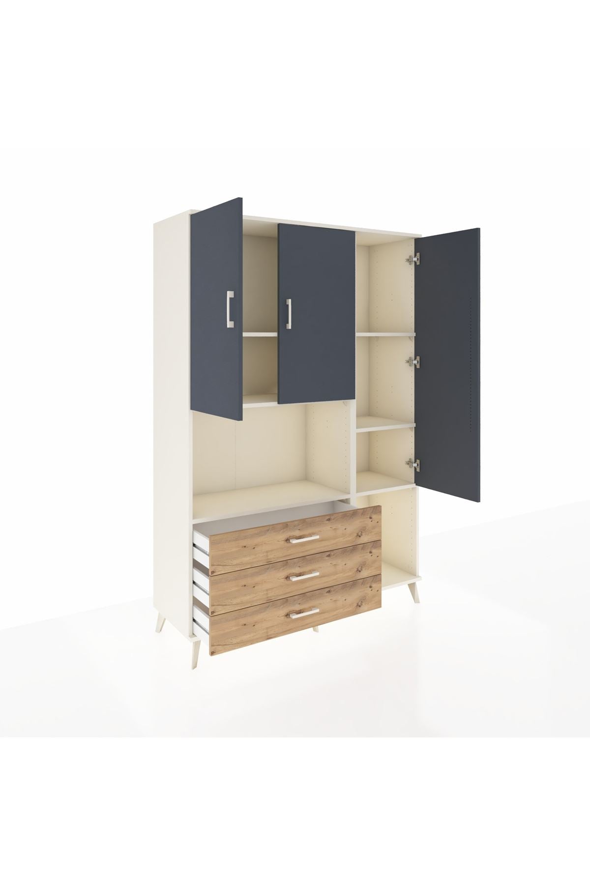 Hyperion Dolap 6 Raflı 3 Çekmeceli 3 Kapaklı 132x44x195 Aytaşı-Antrasit/Çam