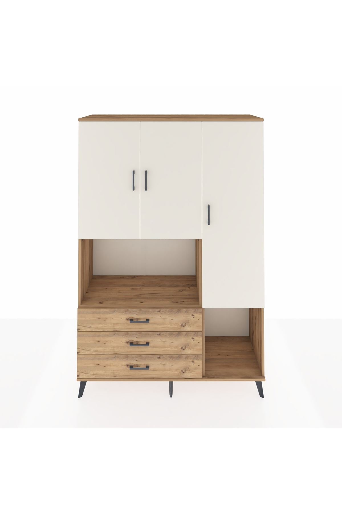 Hyperion Dolap 6 Raflı 3 Çekmeceli 3 Kapaklı 132x44x195 Çam-Aytaşı/Çam