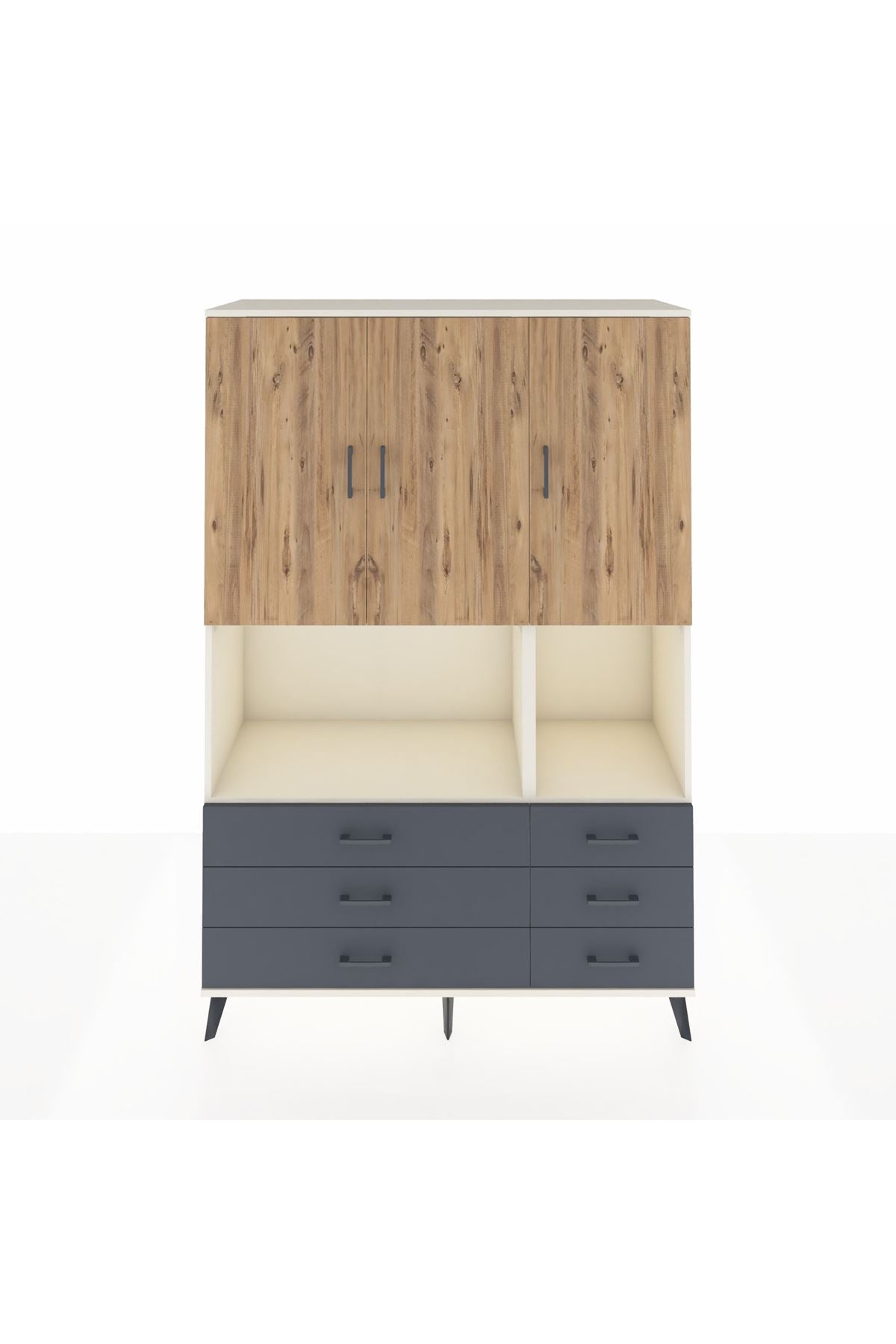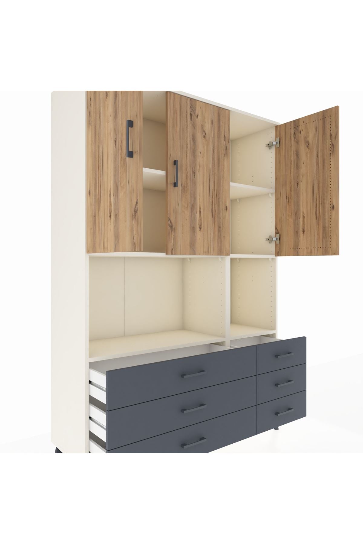 Hyperion Dolap 6 Raflı 6 Çekmeceli 3 Kapaklı 132x44x195 Aytaşı-Çam/Antrasit
