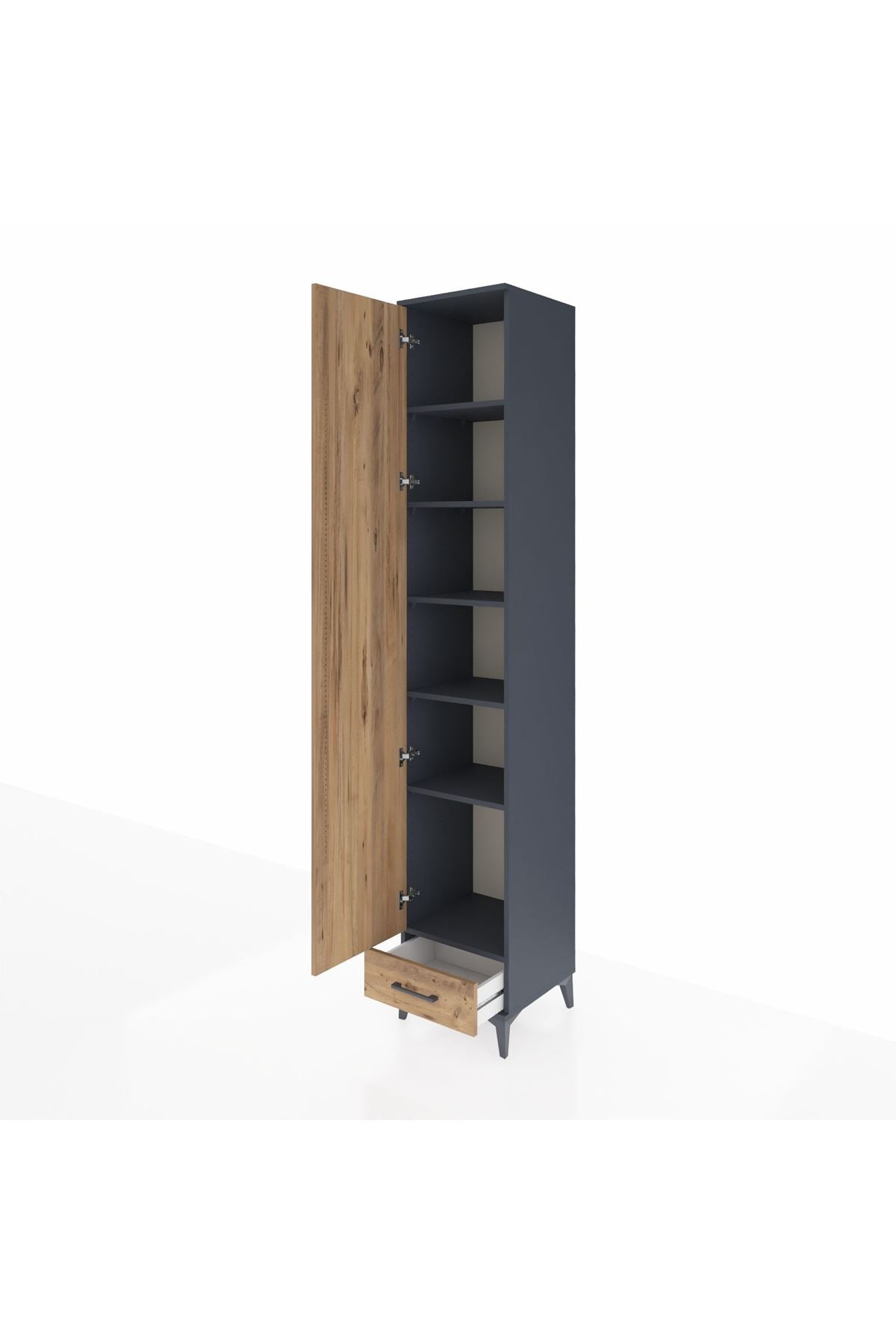Hyperion Dolap 6 Raflı Tek Çekmeceli Tek Kapaklı 44x44x243 Antrasit-Çam