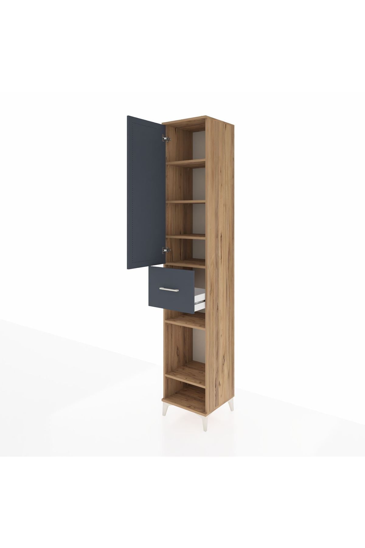 Hyperion Dolap 6 Raflı Tek Çekmeceli Tek Kapaklı 44x44x243 Çam-Antrasit