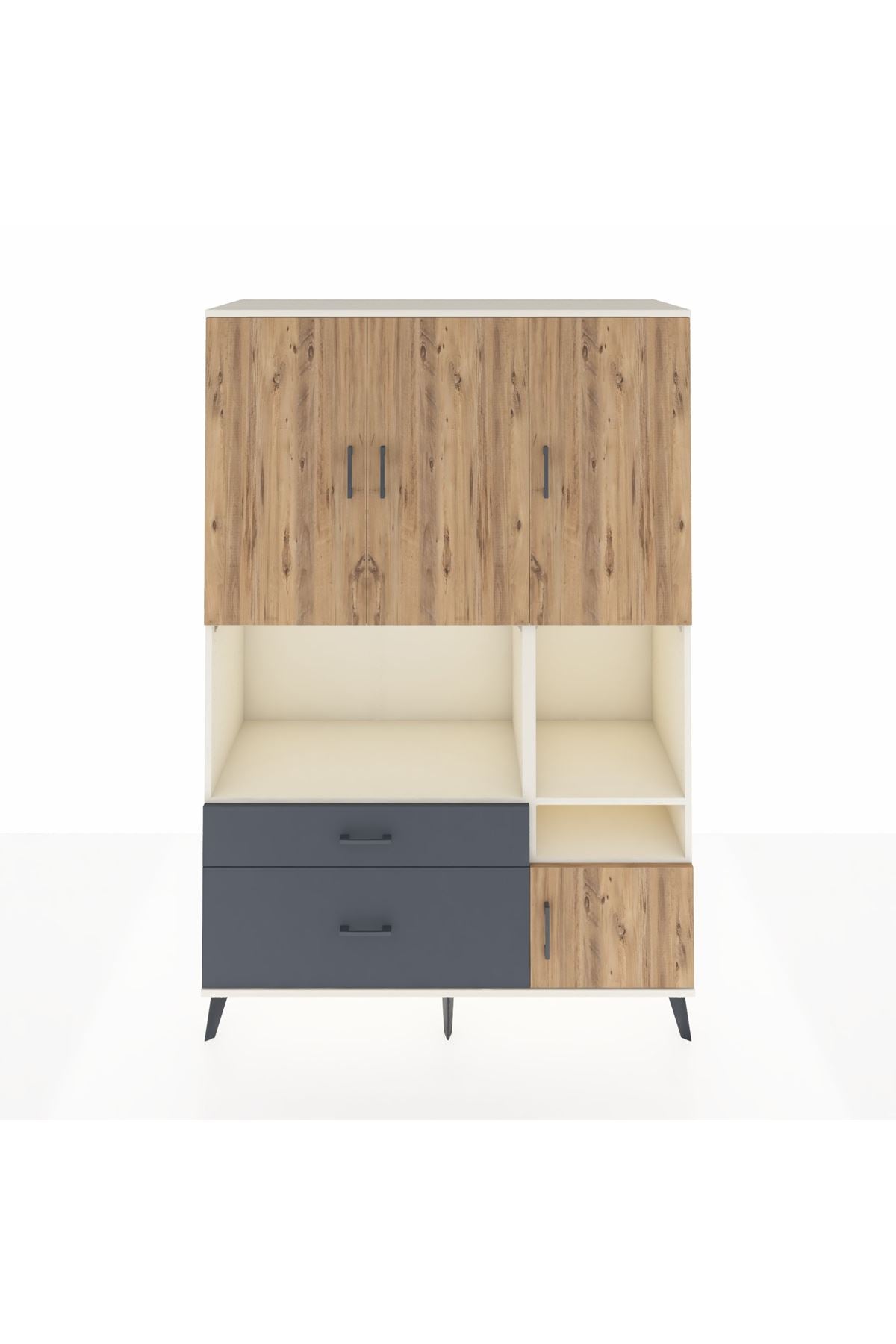 Hyperion Dolap 7 Raflı 2 Çekmeceli 4 Kapaklı 132x44x195 Aytaşı-Çam/Antrasit