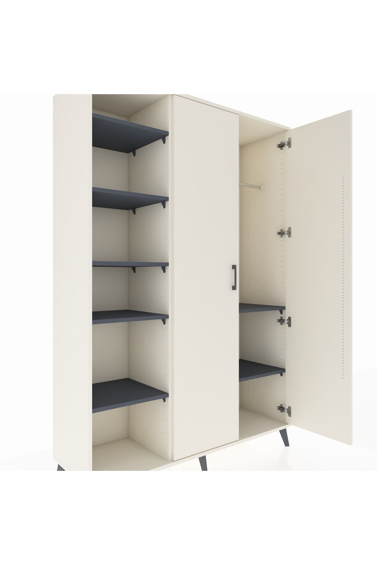 Bu dolap, evinizde düzen ve şık depolama alanı sağlar. Aytaşı beyaz tonuyla ferah bir duruş, antrasit detaylarla modern bir kontrast sunar; atlas çam seçeneği ise sıcak bir doğal atmosfer katar. Metal ayakları sağlam ve dayanıklı, metal kulplar uzun ömürlü kullanım sunar. 7 adet raf, tek askı bölümü ve iki kapaklı tasarım, farklı eşya tiplerini ayrı bölgelerde saklamaya olanak verir. Raflar ayarlanabilir; yükseklik ihtiyacınıza göre düzenleme yapabilirsiniz. Çekmece sayısı konfigüre edilebilir, böylelikle depolama düzenini kişisel ihtiyaçlarınıza göre uyarlayabilirsiniz.