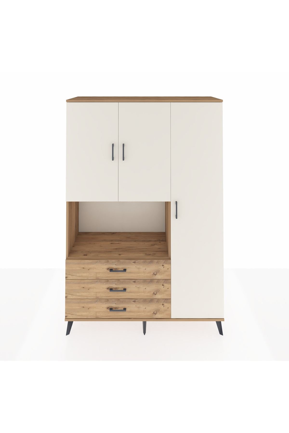 Hyperion Dolap 7 Raflı 3 Çekmeceli 3 Kapaklı 132x44x195 Çam-Aytaşı/Çam